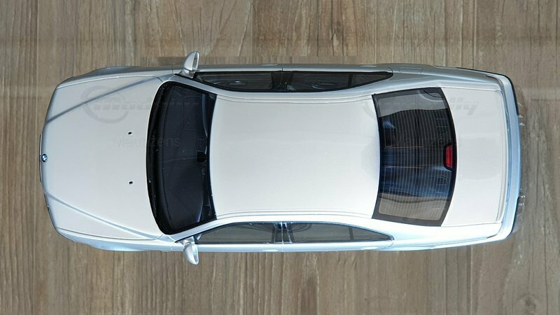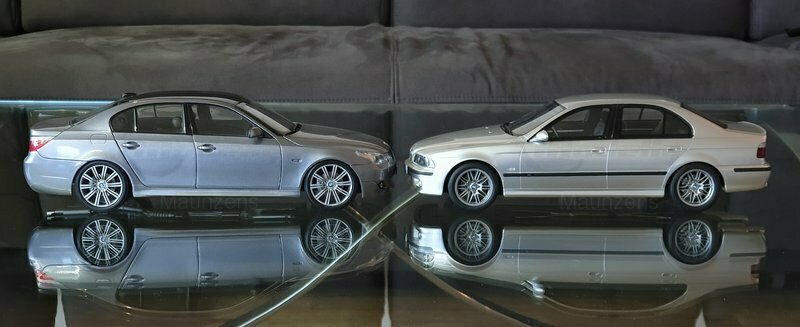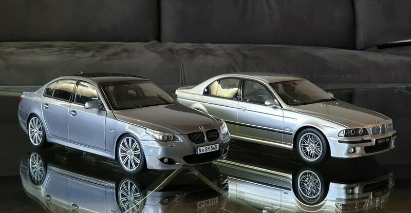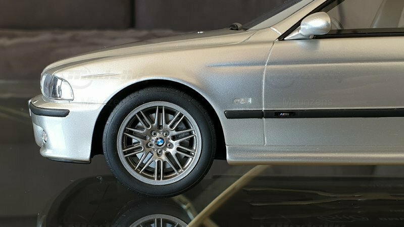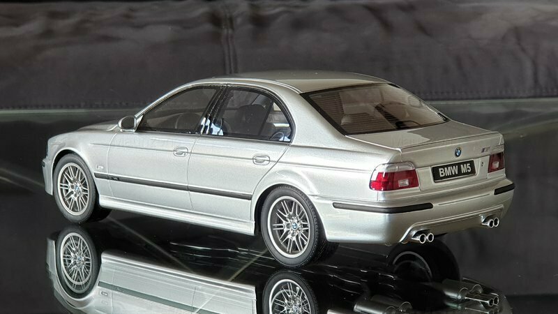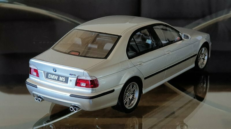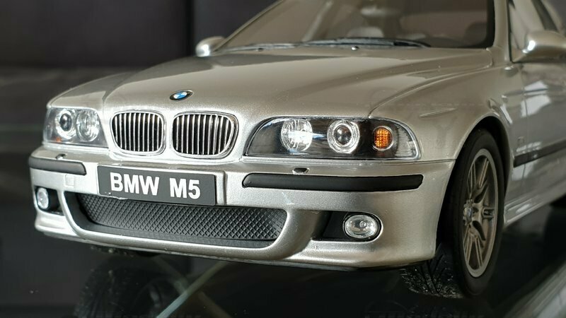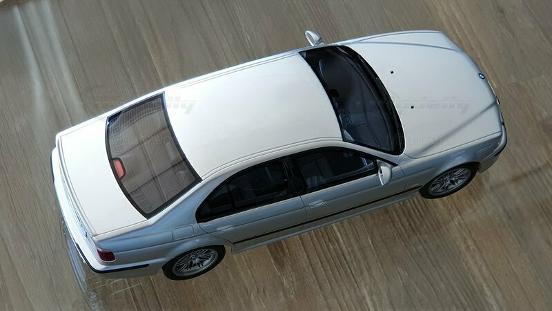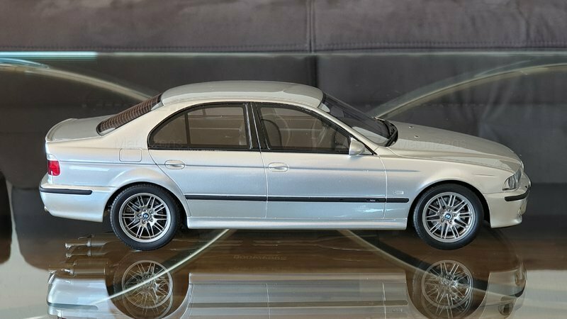 Dieses Modellauto im Maßstab 1:18 wurde von Ottomobile gefertigt und ist aus Resin hergestellt. Modellauto-Sammler weltweit, darunter auch das Modelly-Mitglied „Maunzens“, schätzen die Detailtreue und Präzision, mit der diese Modelle gestaltet sind. Das Resinmaterial erlaubt eine hohe Detailtreue und makellose Lackierqualität. Auf den Fotos ist eine silberne Lackierung zu sehen, die den eleganten und sportlichen Charakter des BMW E39 M5 hervorragend widerspiegelt. Sichtbare Details wie der markante BMW-Nierengrill, die klaren Scheinwerfer sowie die gut ausgearbeiteten Felgen tragen zur fantastischen Optik dieses Modells bei.