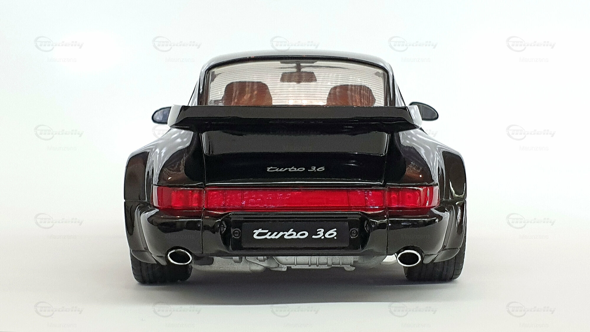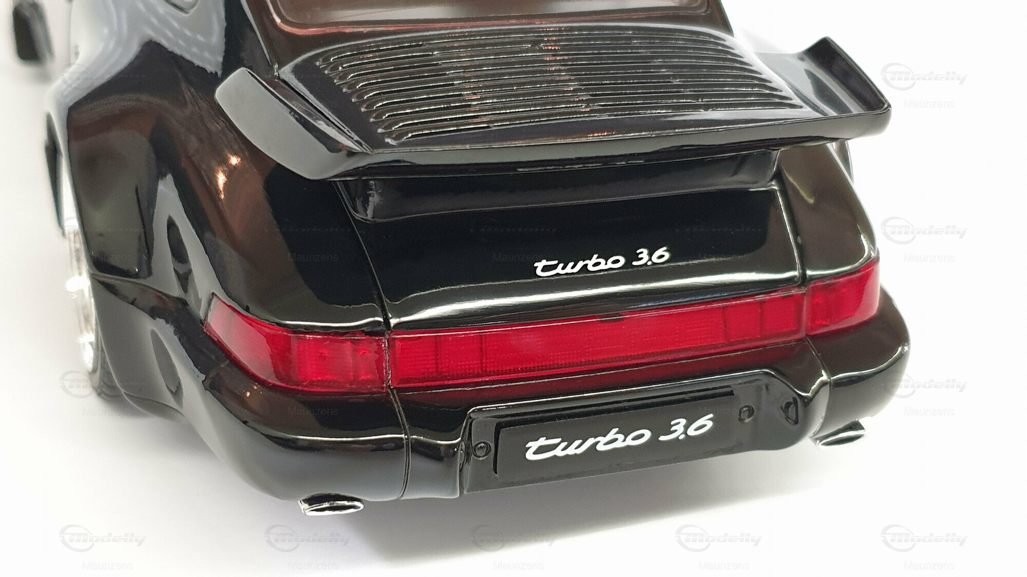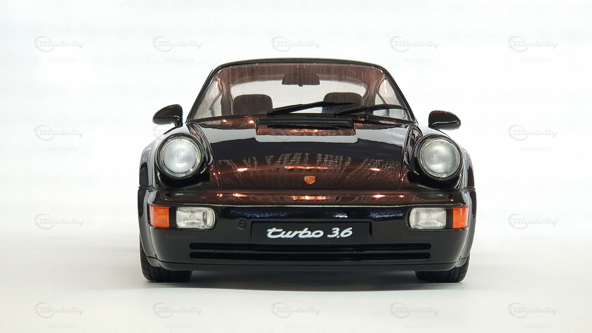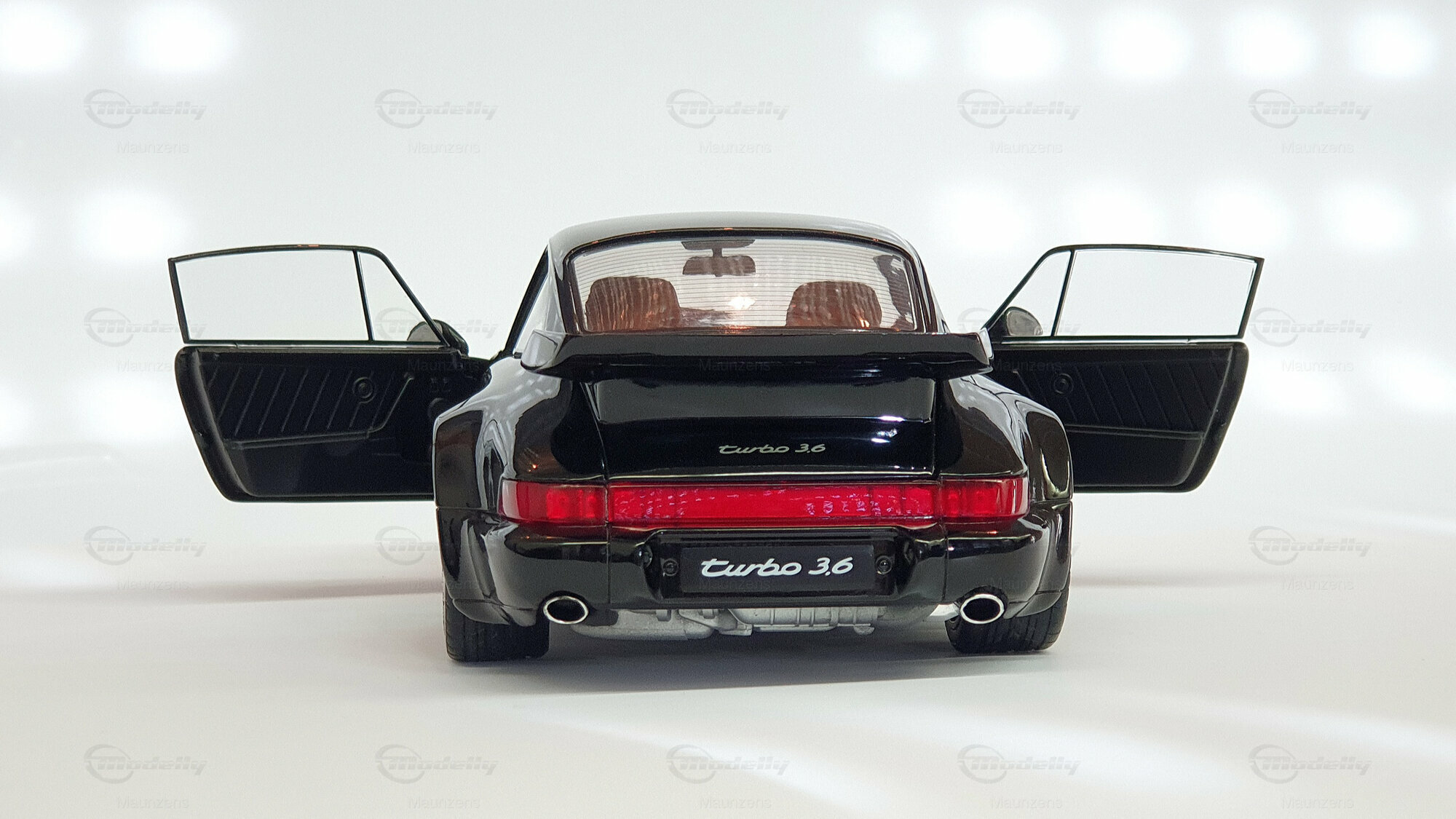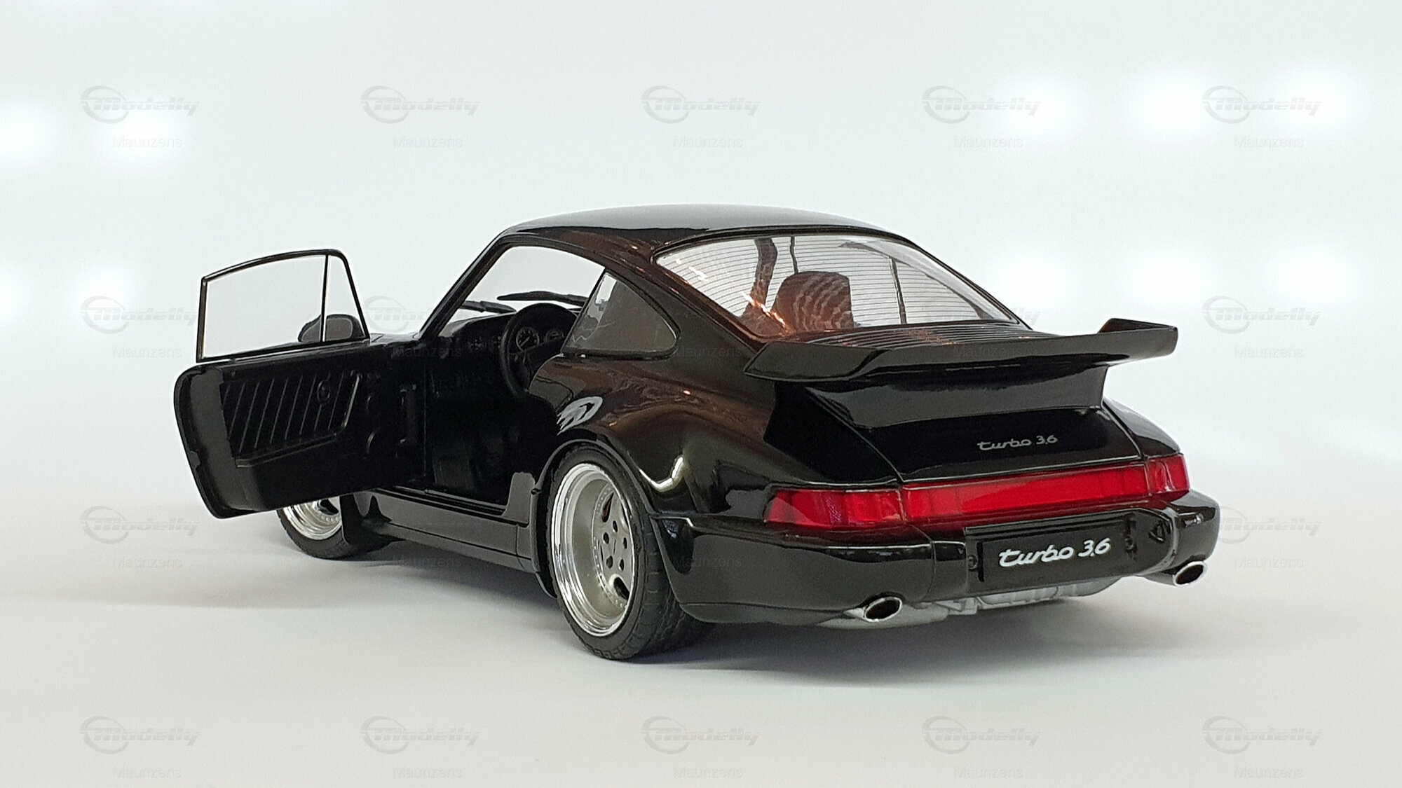 Das präsentierte Modellauto ist ein detailgetreuer Nachbau des Porsche 911 (964) Turbo 3.6, hergestellt von Solido im Maßstab 1:18. Dieses Modell besticht durch seine hohe Detailtreue, die besonders Sammler weltweit anzieht. Die sichtbaren Merkmale umfassen die markante schwarze Lackierung und die präzise nachgebildeten Details der Scheinwerfer und Rückleuchten. Auffällig sind auch die Felgen, die wie Originale von Speedline aussehen, was die Authentizität des Modells unterstreicht. Der Innenraum ist ebenfalls detailliert nachgebildet und zeigt das Cockpit in einem ebenfalls dunklen Farbton. Das Modell ist aus Diecast-Material hergestellt, was für seine Robustheit und Langlebigkeit sorgt. Bemerkenswert ist, dass dieses Modellauto in der Sammlung von Modelly-Mitglied "Maunzens" zu finden ist, was seine Exklusivität und Sammlerwert erhöht.