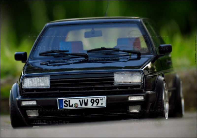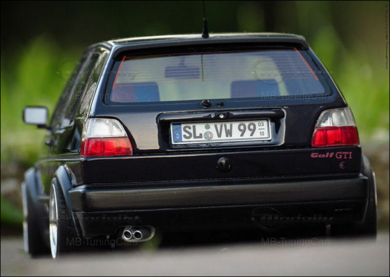 Dieses 1:18 Miniaturmodell, hergestellt von Otto Models, basiert auf dem Volkswagen Golf 2 GTI und wurde vom Modellbau-Enthusiasten "MB-TuningCars" sorgfältig modifiziert. Es ist wichtig zu betonen, dass diese Miniatur stark modifiziert wurde und nicht das Produkt darstellt, das ursprünglich von Otto Models produziert wurde. Die Liebe zum Detail ist sichtbar – von den Scheinwerfern bis hin zu den Rücklichtern, die alle Merkmale des Originals exakt nachbilden. Die schwarzen Farbakzente und die markanten Kotflügelverbreiterungen verleihen diesem Modell eine authentische und präzise Erscheinung. Einige interessante Modifikationen umfassen die Tieferlegung und spezielle Felgen, die im Originalmodell nicht vorhanden sind.