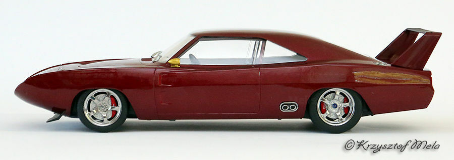Der Dodge Charger Daytona war mit verschiedenen leistungsstarken Motoren ausgestattet. Zu den bekanntesten Varianten gehört der 426 Hemi V8-Motor, der bis zu 425 PS leistete. Der Motor war gekoppelt mit einem Viergang-Schaltgetriebe oder einem dreistufigen Automatikgetriebe. Das Fahrzeug erreichte durch seine spezielle Aerodynamik atemberaubende Geschwindigkeiten und setzte neue Maßstäbe im NASCAR-Rennsport. Der große Heckflügel, der sich oberhalb des Kofferraums befindet, und die verlängerte Frontpartie wurden speziell entwickelt, um den Anpressdruck zu erhöhen und die Stabilität bei hohen Geschwindigkeiten zu verbessern. Diese innovative Konstruktion führte dazu, dass der Dodge Charger Daytona mehrere Rennen gewann und als eines der erfolgreichsten Rennfahrzeuge seiner Zeit galt. Ein interessantes Detail ist, dass das Fahrzeug auch im Film "Fast & Furious 6" vorkam, wo es von Dominic Toretto (gespielt von Vin Diesel) gefahren wird.