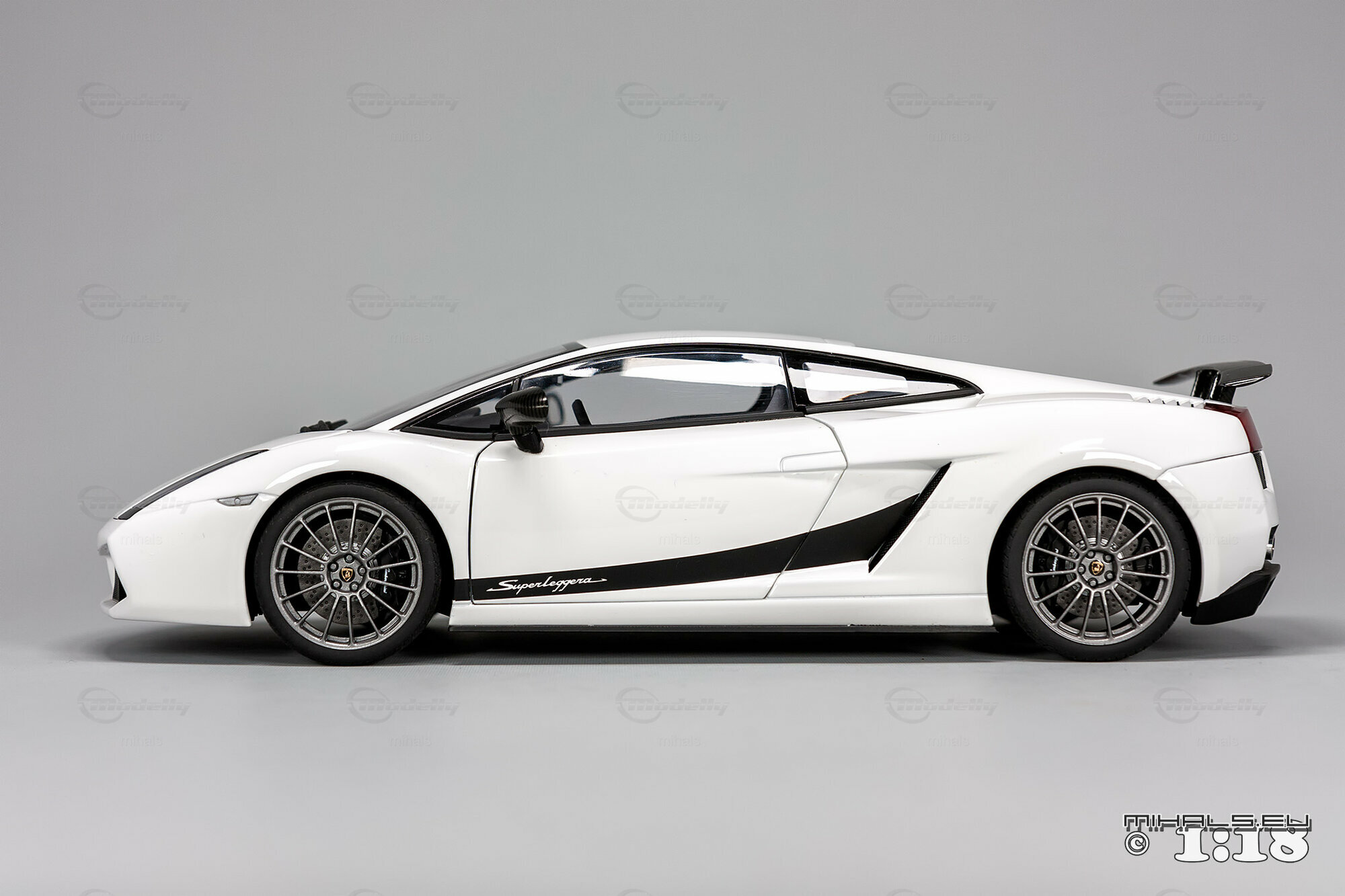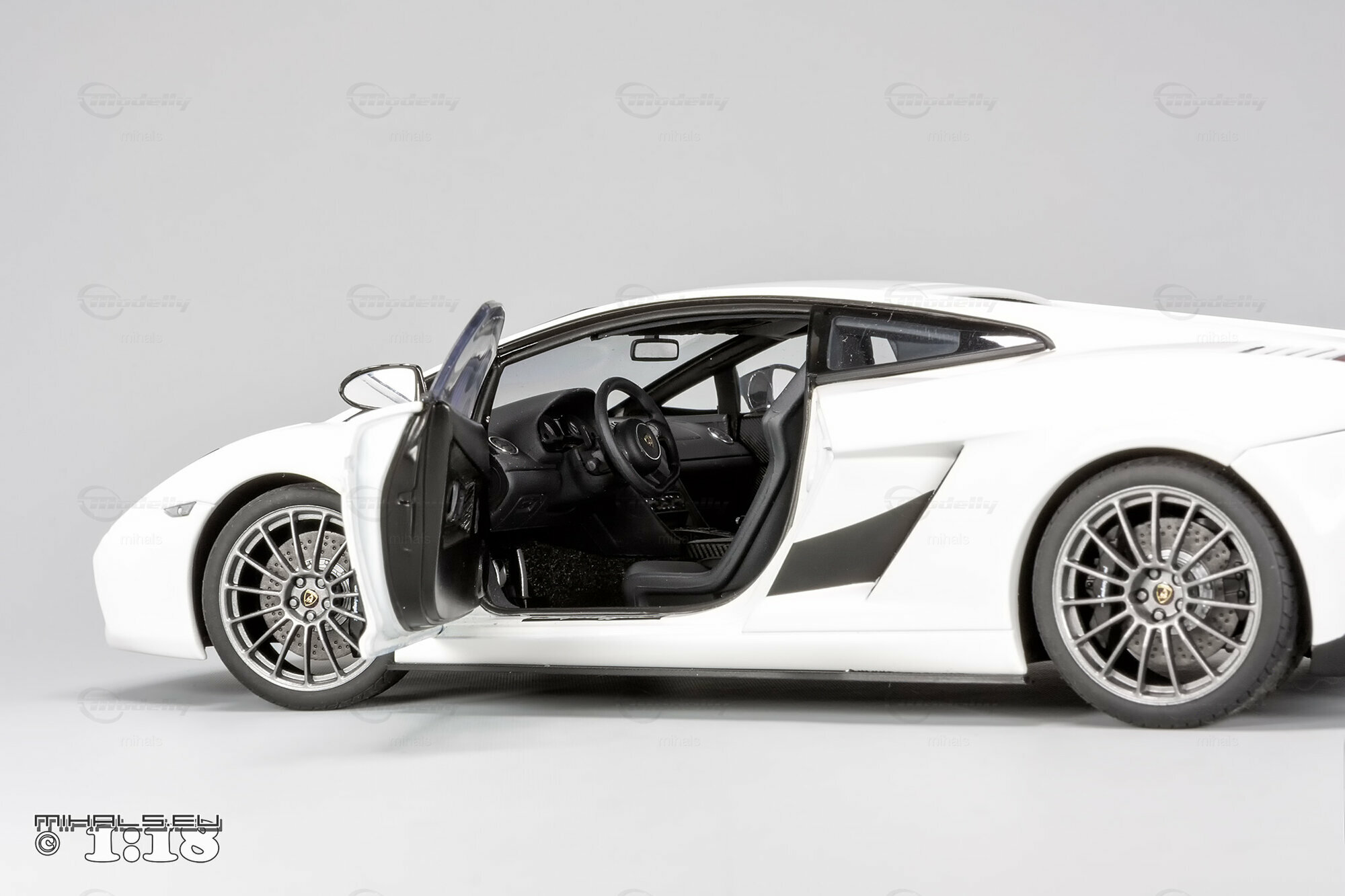 Für Modellauto-Sammler präsentiert die Nachbildung des Lamborghini Gallardo Superleggera im Maßstab 1:18 durch AUTOart Performance eine exquisite Möglichkeit, die Schönheit und die technischen Details dieses ikonischen Fahrzeuges in Miniaturform zu erleben. Dieses Modell ist aus hochwertigem Diecast-Material gefertigt, was nicht nur für bemerkenswerte Detailtreue sorgt, sondern auch für eine angenehme Haptik und Stabilität. Der Maßstab ermöglicht es, auch die feinsten Details des Originals in diesem Miniaturmodell zu bewundern, wie zum Beispiel die markanten Lufteinlässe, die schwarzen Spiegelkappen und die Seitenschweller mit der unverkennbaren „Superleggera“-Schriftzug. Die lackierten Carbon-Spiegel und der Heckflügel des Modells heben die aerodynamischen Feinheiten hervor, die den Superleggera so besonders machen.