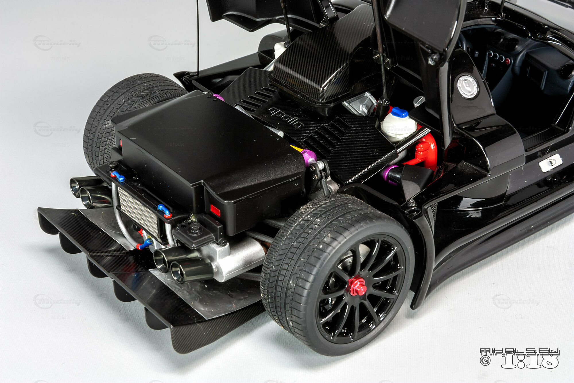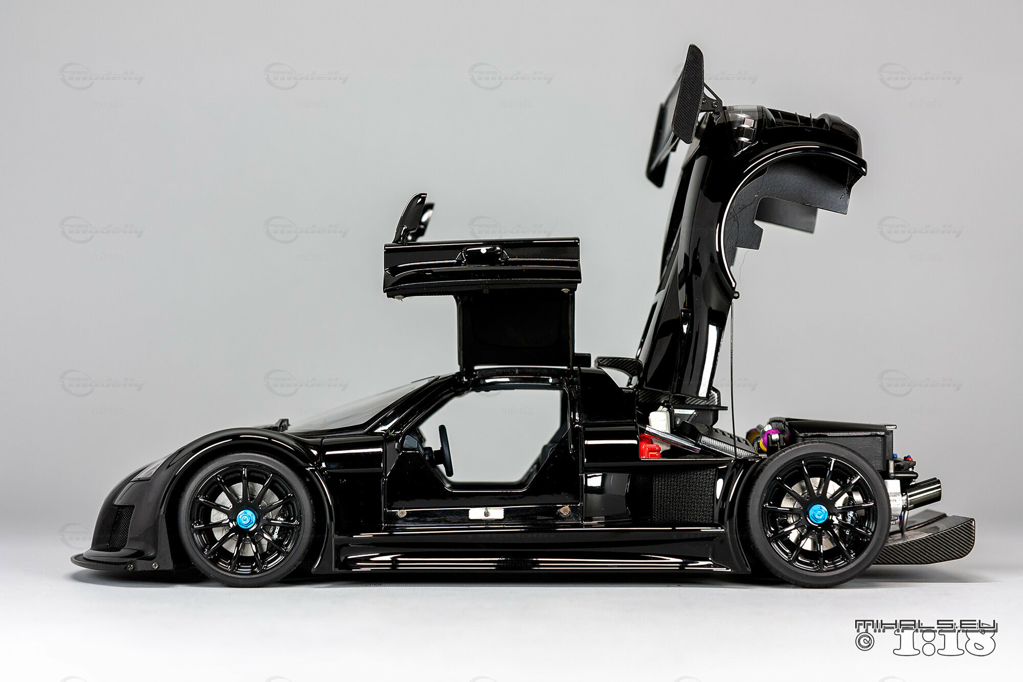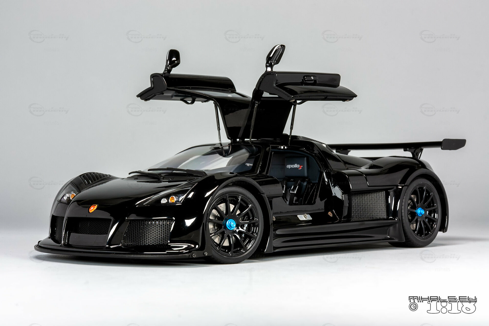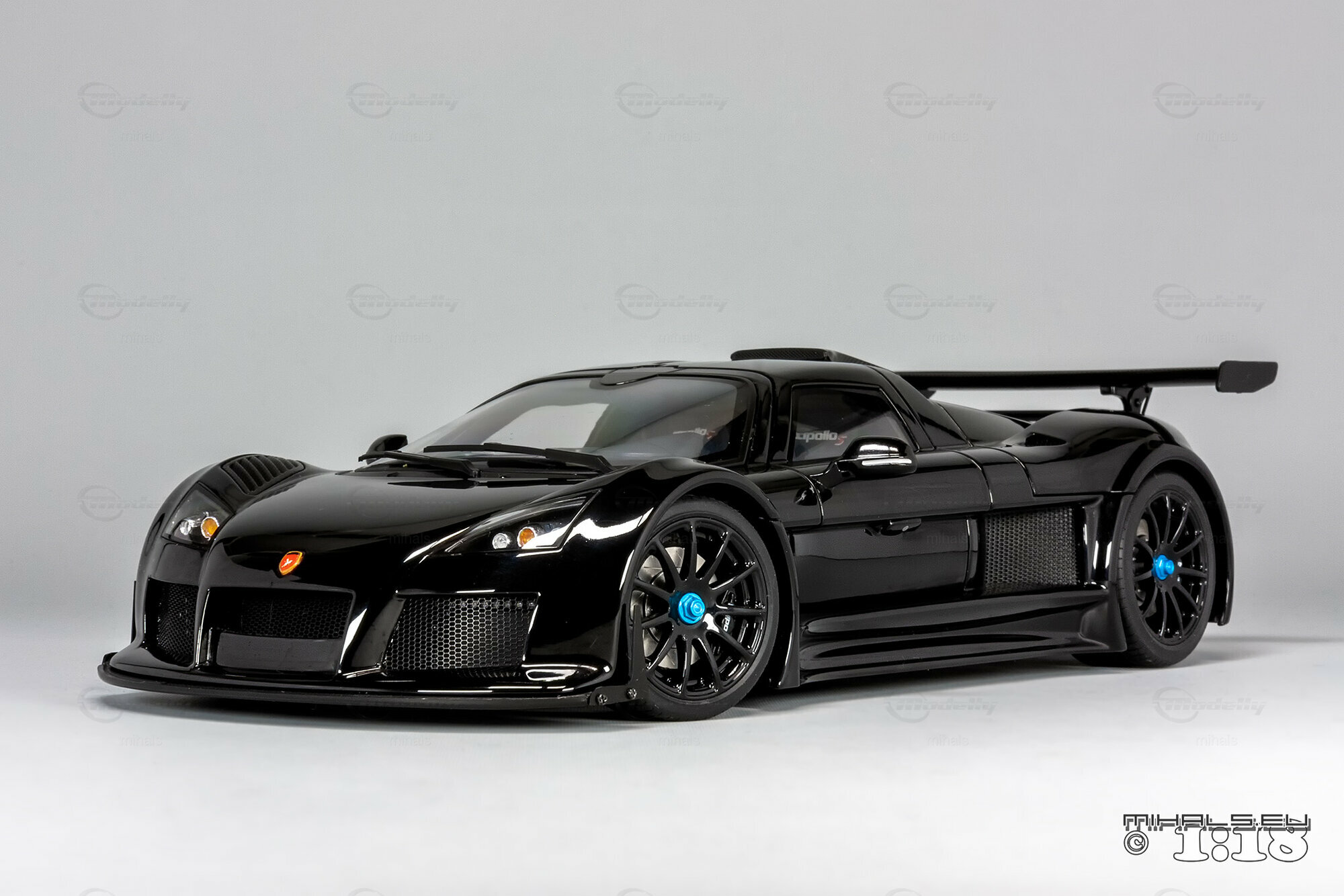 Das hier gezeigte Modellfahrzeug ist eine detailgetreue Nachbildung des Gumpert Apollo S, hergestellt von AUTOart Signature. Dieses Modell im Maßstab 1:18 ist besonders bei Sammlern wegen seiner präzisen Verarbeitung und detailgetreuen Nachbildung des Originals beliebt. Das Miniaturfahrzeug besteht hauptsächlich aus dem Material Diecast und besticht durch seine Authentizität und Detailtreue. Die schwarze Lackierung verleiht dem Modell eine elegante und sportliche Optik. Auffällig sind die ausgeprägten Lüftungsschlitze, die großen Front- und Seitenkühlergrills sowie die tiefgezogene Frontpartie, die den aggressiven und aerodynamischen Charakter des Originals gut einfängt. Modellautofans und Sammler wie "mihals" auf Modelly freuen sich über solche hochwertigen Modelle, die ein Highlight jeder Sammlung darstellen.