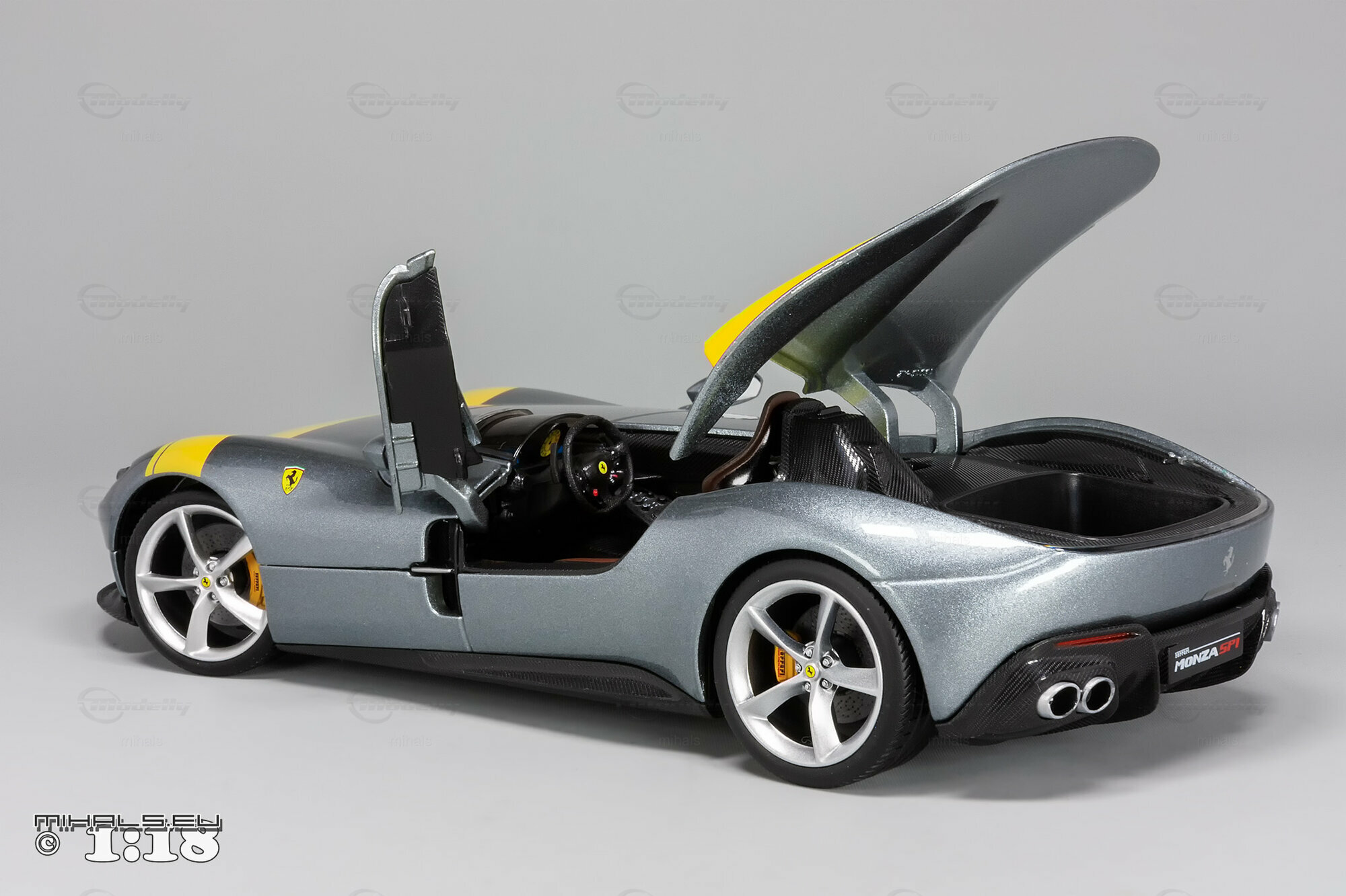 Der Ferrari Monza SP1 ist ein herausragendes Beispiel für High-Performance-Fahrzeuge und wurde 2018 vorgestellt. Dieses Modell gehört zur Icona-Serie von Ferrari, die moderne Technik mit klassischem Design verbindet. Der Monza SP1 ist mit einem 6,5-Liter-V12-Motor ausgestattet, der beeindruckende 810 PS liefert und das Fahrzeug in nur 2,9 Sekunden von 0 auf 100 km/h beschleunigt. Dieses Modell ist unverkennbar von den Rennsportlegenden der 1950er Jahre inspiriert, speziell von Monoposti wie dem Ferrari 166 MM, dem ersten Straßenrennwagen von Ferrari. Entwickelt wurde das Fahrzeug von einem Team unter der Leitung von Flavio Manzoni, der für sein Gespür für Italodesign bekannt ist, und es besticht durch seine Retro-Ästhetik kombiniert mit ultramoderner Technik. Zu den bemerkenswerten Features gehören die aerodynamische Linienführung ohne Windschutzscheibe und modernste Materialien für Leichtbau und Stabilität.