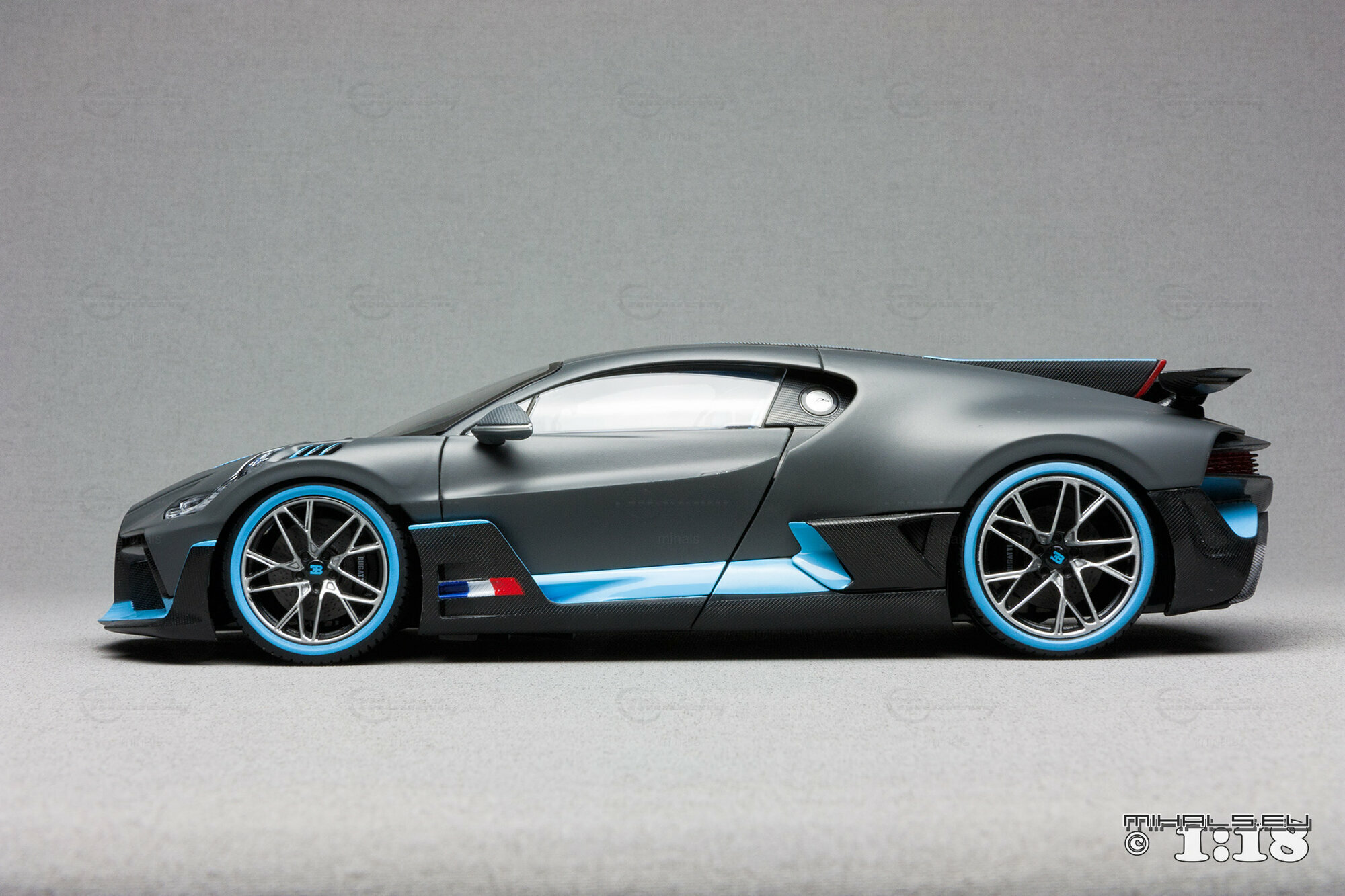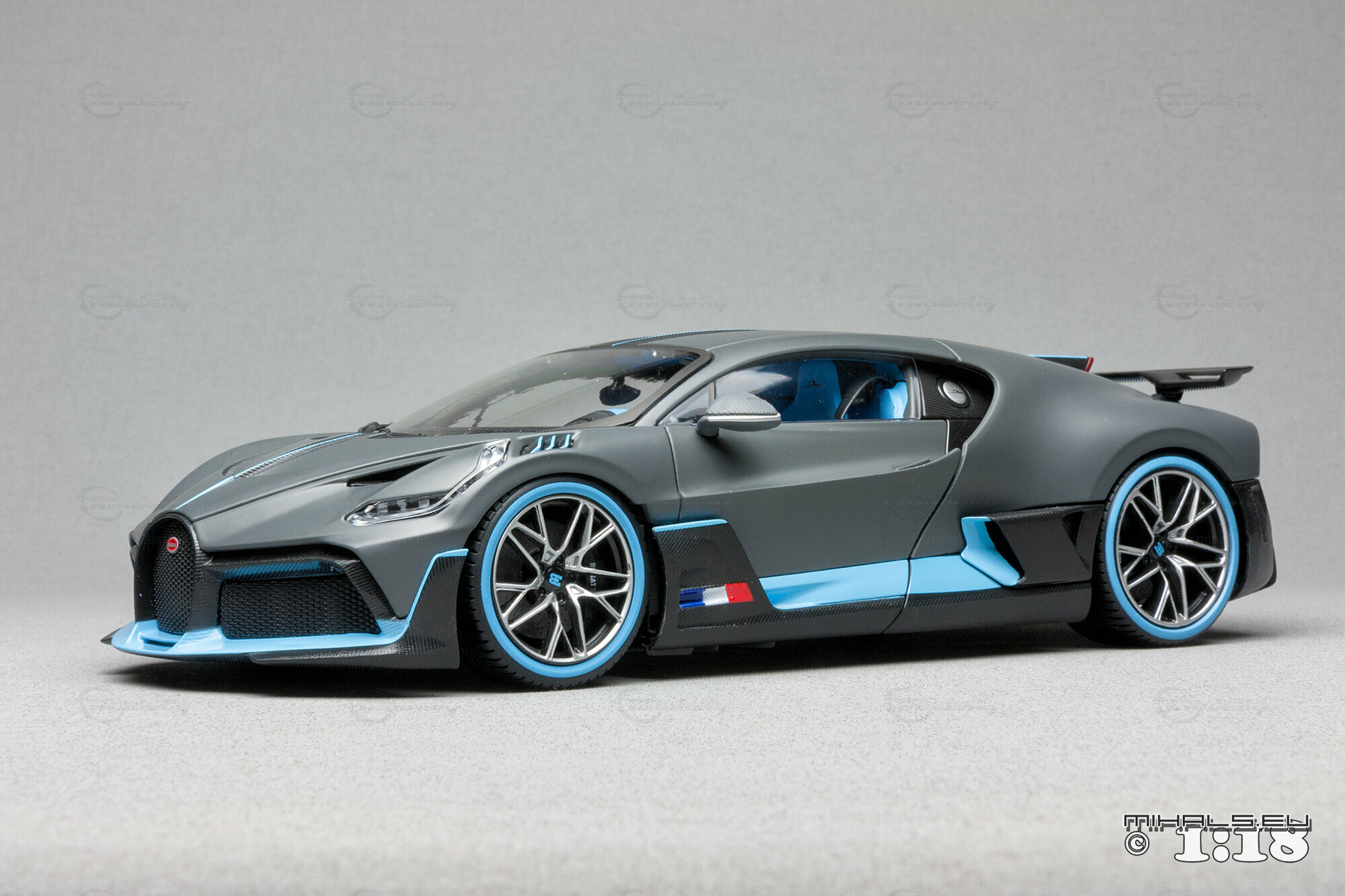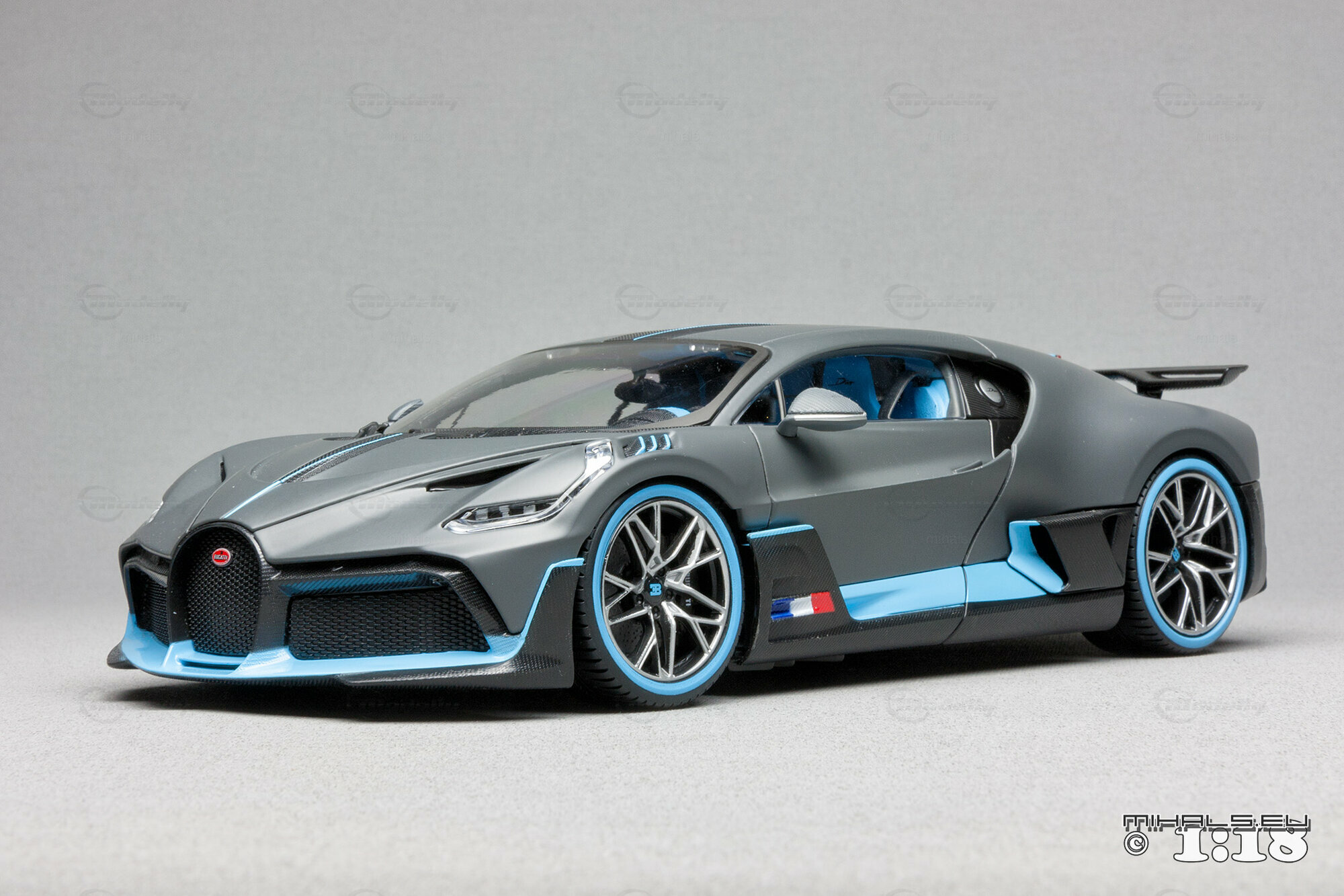 Das abgebildete Modellfahrzeug ist eine originalgetreue Nachbildung des Bugatti Divo im 1:18-Maßstab, hergestellt von Bburago. Modellliebhaber werden die sorgfältige Ausführung und die Liebe zum Detail bei dieser Miniatur zu schätzen wissen. Das Modell besteht aus einem stabilen und hochwertigen Diecast-Material, das nicht nur die Optik des Originals präzise widerspiegelt, sondern auch für eine hervorragende Langlebigkeit sorgt. Die charakteristischen Designelemente des Bugatti Divo wie die markante Front, die aerodynamischen Flügel und die präzise nachgebildeten Scheinwerfer sind alle deutlich erkennbar. Die Farbkombination aus Grau und Blau, inklusive der französischen Flagge an der Seite, wurde exakt wie beim originalen Bugatti Divo umgesetzt.
