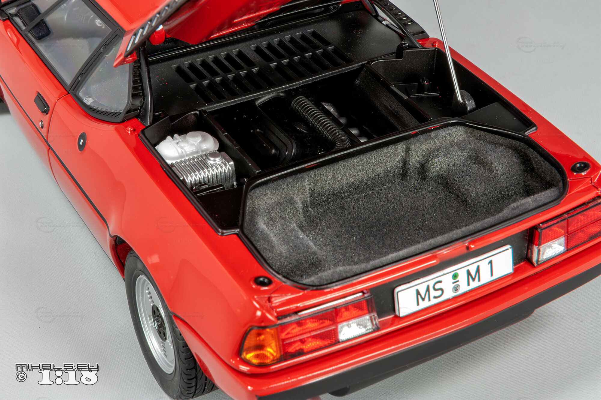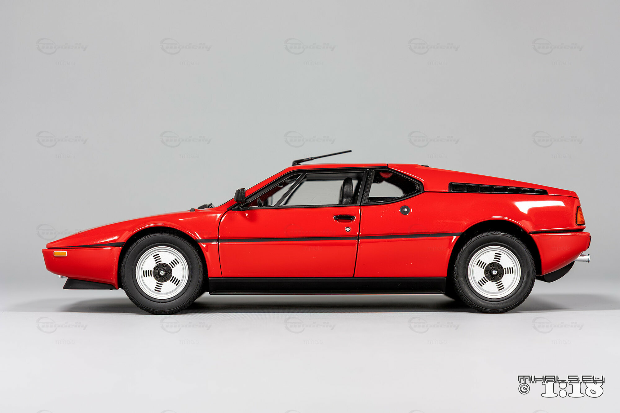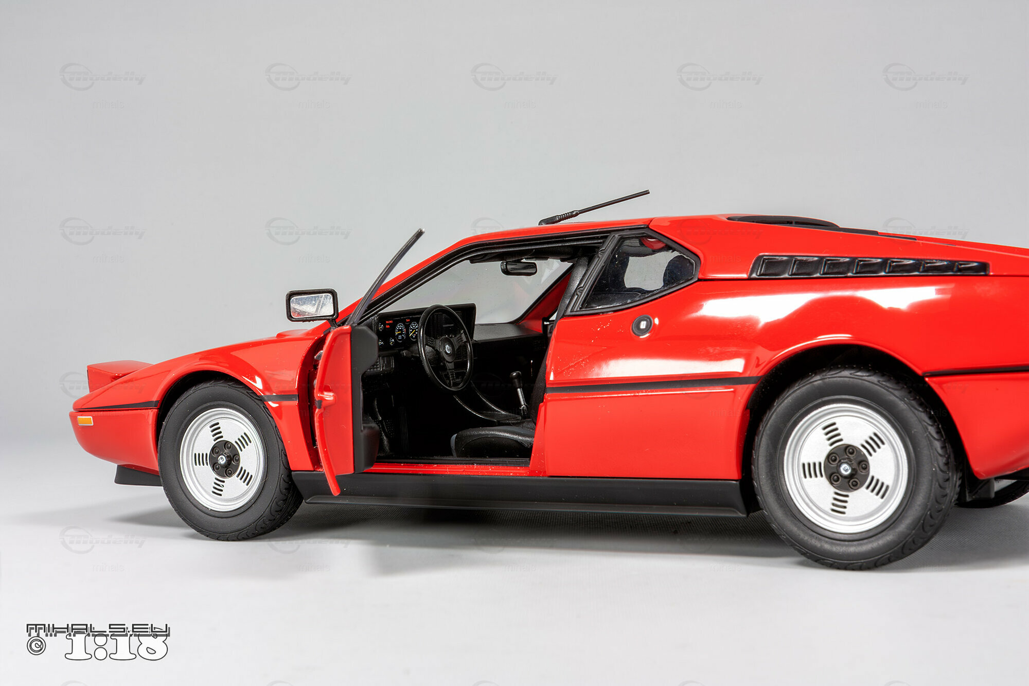 Als der BMW M1 1978 debütierte, prägten Ereignisse wie die Camp-David-Abkommen, die Wahl von Johannes Paul II. zum Papst und der Start des ersten Navstar-/GPS-Satelliten das Zeitgeschehen. Diese Beispiele sollen die zeitliche Einordnung des Fahrzeugs verdeutlichen. Technisch war der BMW M1 für seine Zeit fortschrittlich: Rohrrahmenchassis, Einzelradaufhängung mit doppelten Dreieckslenkern rundum, Zahnstangenlenkung und eine Gewichtsverteilung, die vom Mittelmotor-Layout profitiert. Das Leergewicht liegt, je nach Ausstattung, um 1.300–1.350 kg. Der sprintet in etwa 5,6 Sekunden von 0 auf 100 km/h. Die Produktion war dezentral organisiert: Rahmenbau in Modena, Karosserien bei Italdesign, Endmontage später bei Baur in Stuttgart; BMW steuerte den M88-Motor aus München bei. Der E26 markiert damit eine seltene deutsch-italienische Kooperation im Sportwagenbau, ausgelöst durch Verzögerungen beim ursprünglich geplanten Partner Lamborghini. Im Straßenbild fiel der BMW M1 durch die niedrige Keilform, die flächenbündigen Klappscheinwerfer und den einzelnen Dachanschlag-Scheibenwischer auf – alles prägende Merkmale, die auch beim hier gezeigten Modell erkennbar sind.