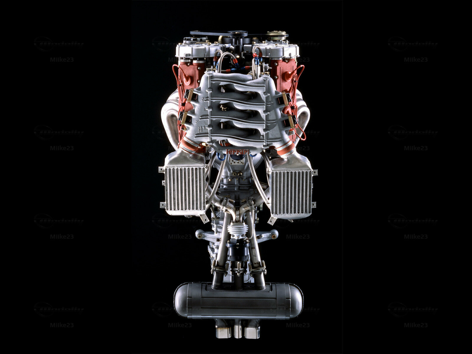 Typ 'F120 A' 90° V8 32V-Mittelmotor, längs / 2 x Turbolader 'IHI' / 2.936 cm³ / 478 PS / 577 Nm / 5-Gang, manuell / Heck-Antrieb / 1.100 kg / 0-100 km/h 4,1 s / Vmax 324 km/h.