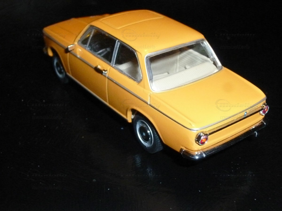 Das Exemplar des BMW 1600-2, das von Minichamps im Maßstab 1:43 gefertigt wurde, ist ein hervorragendes Beispiel für die Detailgenauigkeit im Miniaturmodellbau. Das Modell besteht aus robustem Diecast-Material, das für seine Langlebigkeit bekannt ist und eine hochwertige Basis für die präzise Nachbildung darstellt. Die Lackierung in einem gelb-orangefarbenen Ton, der an das historische „Colorado Orange“ erinnert, verleiht dem Modell ein authentisches Aussehen. Das Modell sticht durch die akkurate Wiedergabe der Karosserieform, die klaren Scheiben und die verchromten Designelemente wie Zierleisten und Stoßfänger heraus. Auf den Fotos, die von Modelly-Mitglied „mmuellerb“ bereitgestellt wurden, kann die exakte Nachbildung der Griffe, Türspalten und Scheinwerfer hervorragend erkannt werden. Solch ein Modell ins Regal zu stellen, ist für Sammler ein unverkennbares Vergnügen.