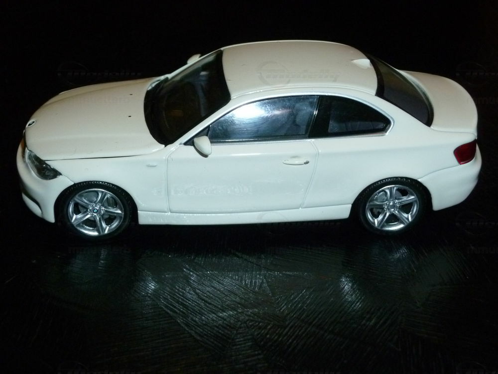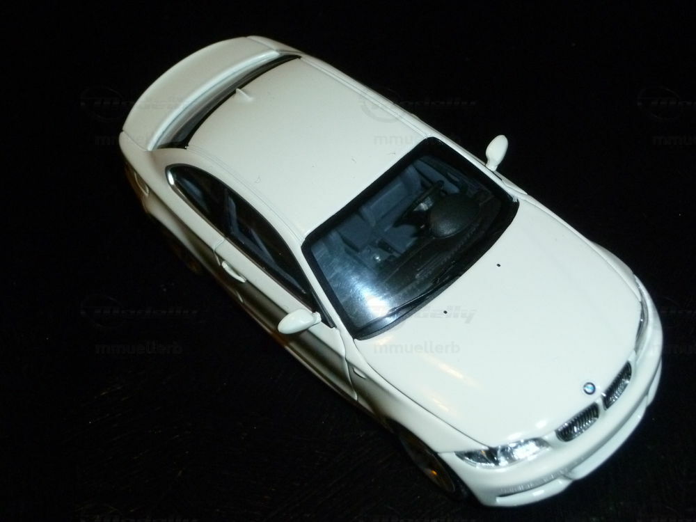 Dieses Modellauto im 1:43 Maßstab, hergestellt von Minichamps, ist ein perfektes Abbild des originalen BMW 1er Coupé. In der Sammlung des Modelly-Mitglieds "mmuellerb" spiegelt es alle charakteristischen Merkmale des Originals wider. Die sorgfältige Reproduktion des Karosseriedesigns zeigt deutlich die sportlichen Linien und die aggressive Frontpartie mit den ikonischen Doppelnieren-Grill. Die Lackierung in einem typischen Weißton verleiht dem Modell eine authentische Anmutung. Das Miniaturauto zeigt die breiten Rückleuchten und den eleganten Dachverlauf, der das Coupé-Design unterstreicht.