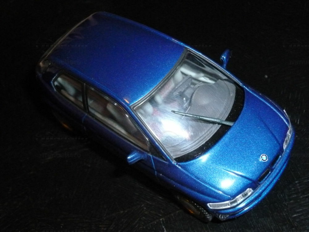 Das hier gezeigte Modellauto im Maßstab 1:43 wurde von einem der bekanntesten Hersteller, Minichamps, gefertigt. Die Lackierung des Modells ist in einem glänzenden Blau gehalten, das die typische Farbe der Konzeptfahrzeuge jener Zeit eindrucksvoll wiedergibt. Auffällig ist die akribische Detailtreue, mit der die Form der Scheinwerfer und des Kühlergrills nachempfunden wurden. An der Front des Modells befindet sich der ikonische Nierengrill von BMW sowie die realitätsnah gestalteten Leuchten mit angedeuteten Blinkleuchten. Die Fenster sind klar, und das Interieur ist, soweit sichtbar, mit zwei Sitzen ausgestattet, die dem ursprünglichen Design des BMW E1 treu bleiben. Der Innenraum ist in hellem Grau gehalten, was einen schönen Kontrast zur Außenfarbe bildet.