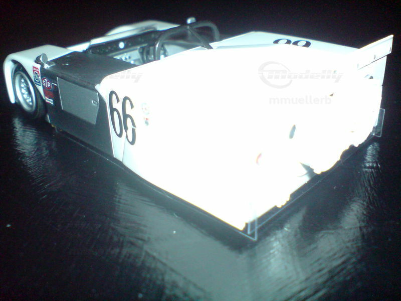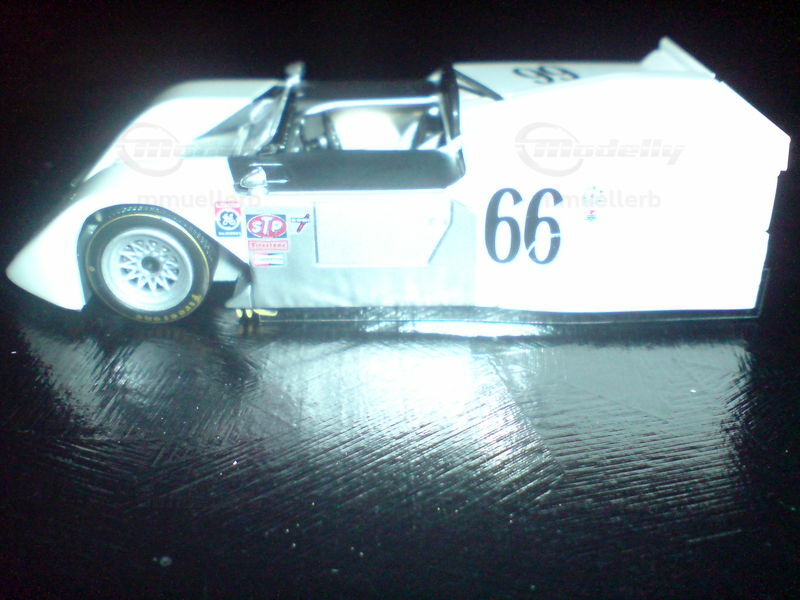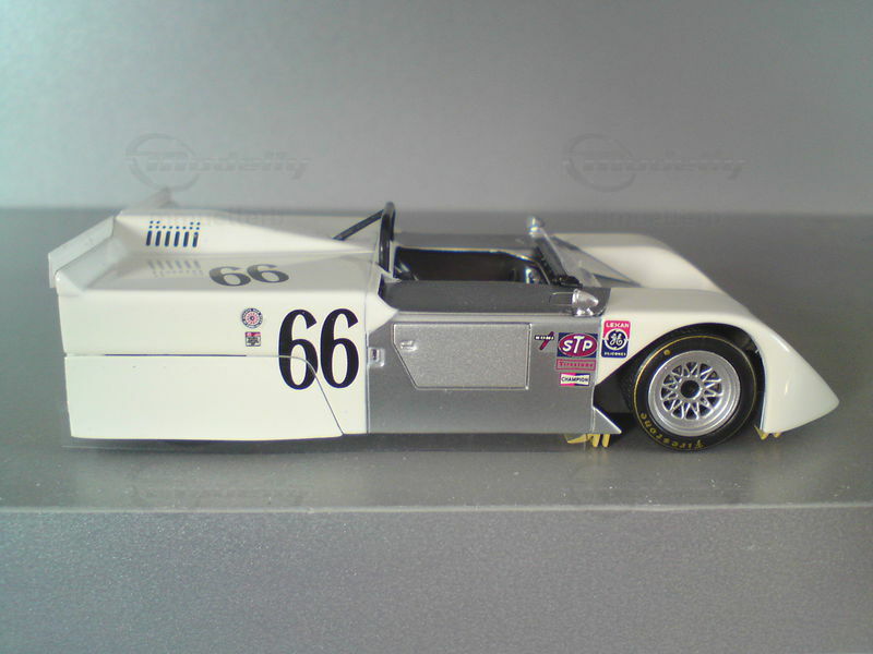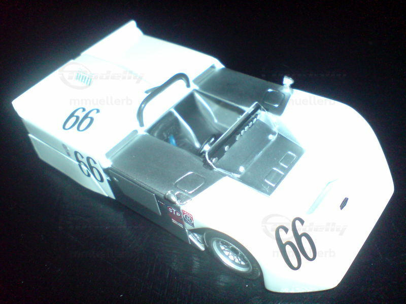 Das Minichamps Modell im Maßstab 1:43 zeigt eine beeindruckende Detailtreue. Die weiße Lackierung des Modells mit den schwarzen Startnummern "66" und den Sponsorenaufklebern von STP reflektieren das Original exakt. Die sorgfältige Gestaltung der Lüftereinheiten und der aerodynamischen Elemente tragen zur Authentizität bei. Es sind alle wesentlichen Merkmale des Originals wie die leichten Aluminiumpaneele und die offenen Radkästen enthalten. Das Cockpit ist ebenfalls originalgetreu nachgebildet, mit sichtbaren Armaturen und dem originalgetreuen Lenkrad. Für Sammler wie "mmuellerb" ist dies ein außergewöhnliches Stück, das sowohl die Ingenieurskunst von Jim Hall als auch die Fertigungskunst von Minichamps würdigt.