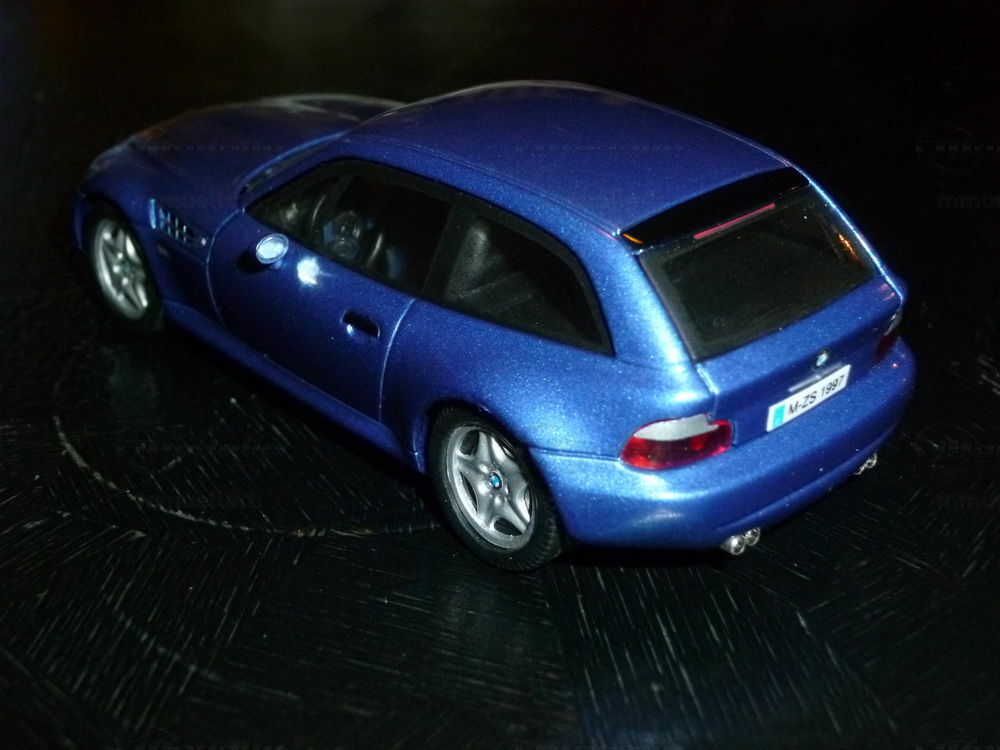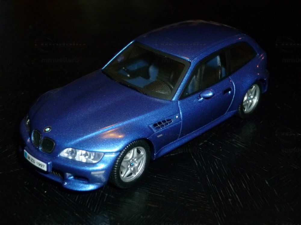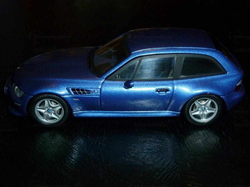 Das hier gezeigte Modellauto im 1:43 Maßstab ist von Schuco mit viel Liebe zum Detail gefertigt und ist Teil der Modellly-Sammlung des Mitglieds "mmuellerb". Dieses Miniaturmodell präsentiert das M Coupé in einem eleganten Blauton, der dem ikonischen Look des Originals nachempfunden ist. Bemerkenswert sind die präzisen Details wie die markanten Lufteinlässe an den Seiten und die exakte Nachbildung der Front- und Rückscheinwerfer. Die feinen Details der Karosserie und die hochwertige Lackierung machen dieses Modell zu einem perfekten Sammelobjekt für Liebhaber von klassischen Sportwagen. Der Detailreichtum und die akkurate Darstellung der Linienführung des M Coupé verleihen dem Modell eine besondere Faszination.