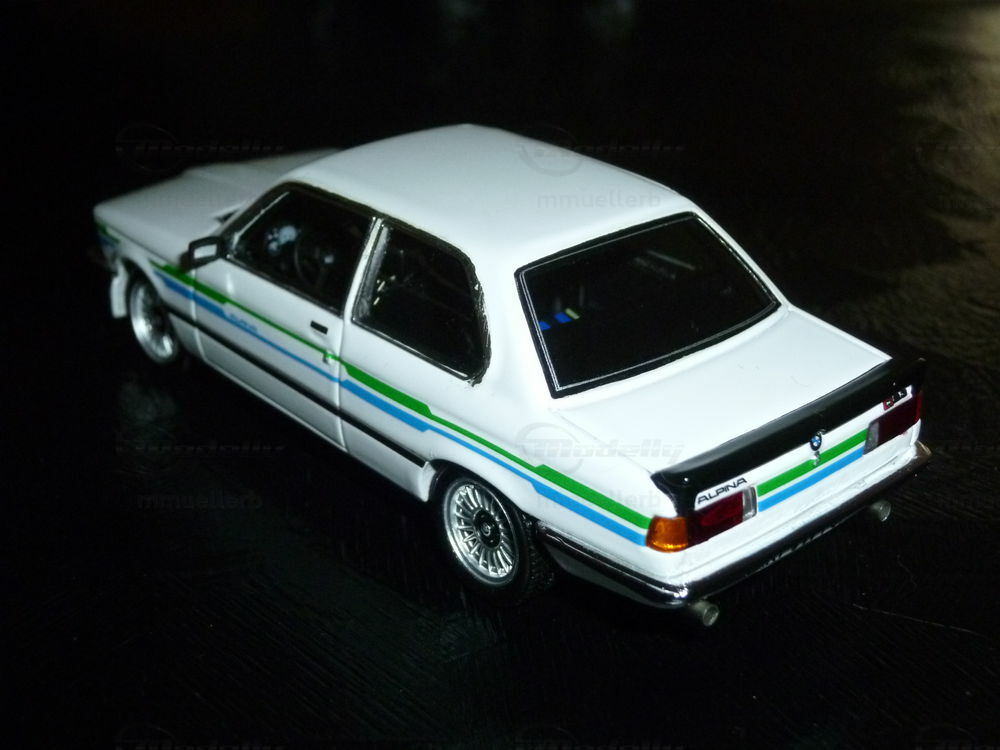 Das Modell im Maßstab 1:43 von Spark Minimax weist eine bemerkenswerte Liebe zum Detail auf. Die weißen Lackierungen und der grün-blaue Streifen samt Alpina Schriften sind präzise dargestellt, was die Authentizität des Modells noch erhöht. Die typischen Alpina-Felgen sind deutlich erkennbar und unterstreichen den sportlichen Charakter des Fahrzeugs. Zu den technischen Feinheiten der Originalfahrzeuge gehören das sportliche Fahrwerk, modifizierte Motoren und Aerodynamikpakete, die im Miniaturmodell im Maßstab 1:43 besonders gut zur Geltung kommen. Diese sorgfältige Nachbildung macht das Modell zu einem begehrten Sammlerstück.