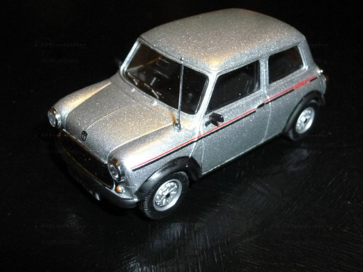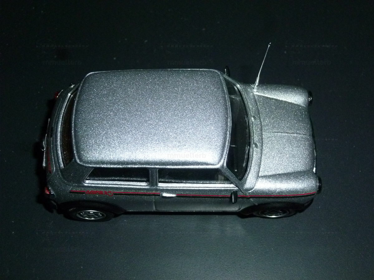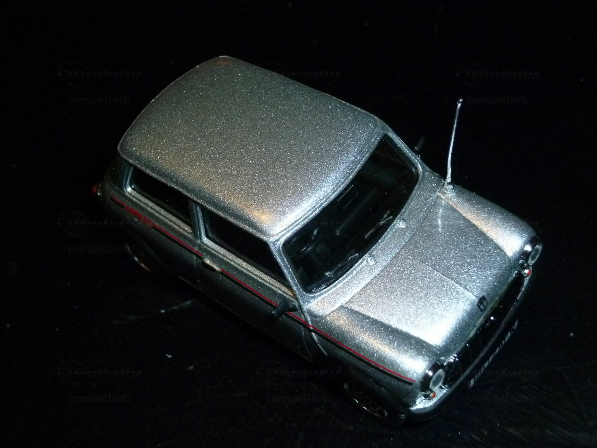 Das dargestellte Modellauto im Maßstab 1:43 wurde von Vitesse gefertigt und gehört zur Sammlung des Modelly-Mitglieds "mmuellerb". Dieses Modellauto ist aus dem Material Diecast gefertigt, welches für seine Haltbarkeit und Detailtreue bekannt ist. Vitesse ist bekannt für hochwertige Nachbildungen von klassischen Fahrzeugen, und dieses Modell bildet da keine Ausnahme. Es zeigt die silberne Lackierung des Originals, die durch horizontale, rote Streifen an den Seitenhülsen und das deutliche 'Mini 25'-Logo ergänzt wird. Die Form und Proportionen des Modells fangen die Essenz des echten Mini 25th Anniversary perfekt ein, bis hin zu den charakteristischen, runden Scheinwerfern und dem klassischen Mini-Kühlergrill.