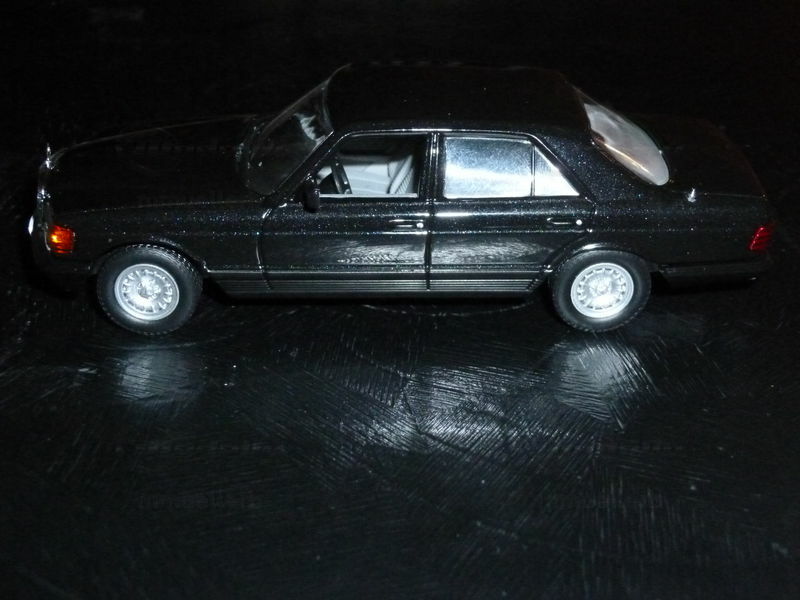 Das hier gezeigte Modell des Mercedes-Benz 500 SE (W126) im 1:43 Maßstab von White Box ist ein faszinierendes Sammlerstück. Das Modell ist in einer eleganten schwarzen Lackierung gehalten, welche unter Lichteinfluss dezent glitzert und so die luxuriöse Ausstrahlung des Originals perfekt einfängt. Die Fensterrahmen, Türgriffe und anderen feinen Details sind präzise nachgebildet und vermitteln einen hohen Grad an Realismus. Besonderes Augenmerk wurde auf die originalgetreue Wiedergabe des Innenraums gelegt, der bei diesem Modell in einem hellgrauen Farbton gehalten ist. Für Modelleisenbahner und Dioramen-Baumeister mag dies ein besonders interessantes Modell sein, da es die Möglichkeit bietet, städtische oder luxuriöse Szenarien authentisch darzustellen. Modelly-Mitglied "mmuellerb" besitzt dieses besonders detailgetreue Modell, das sich durch seine hohe Verarbeitungsqualität auszeichnet.