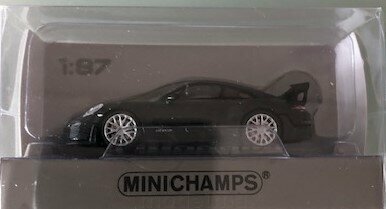 Der Porsche 911 GT2 RS besticht durch ein aggressives, aber gleichzeitig elegantes Design. Die abgebildete Miniatur zeigt genau diese Eigenschaften, mit klaren Linien und markanten aerodynamischen Merkmalen. Die Modelleffekte lassen die charakteristischen Lüftungsschlitze und den großen Spoiler des echten GT2 RS erkennen. Der Wagen auf dem Foto ist in Schwarz lackiert und hat weiße Felgen, welche möglicherweise vom Hersteller MICHELIN sind, die auch für ihre Reifenberühmtheiten bekannt sind. Diese Miniatur bietet eine schöne Balance zwischen Detaillierung und Maßstabsgenauigkeit und wird in einer Schutzverpackung geliefert, die gleichzeitig die Sicht auf das Modell ermöglicht.