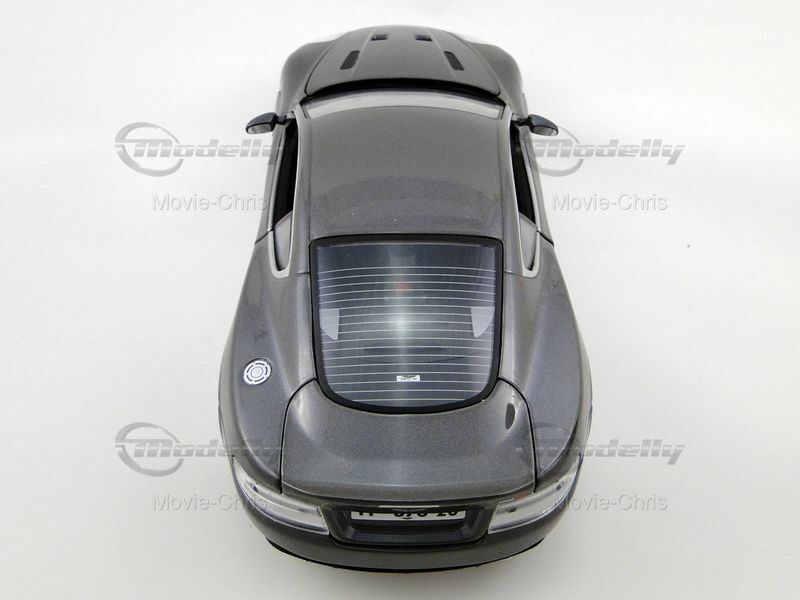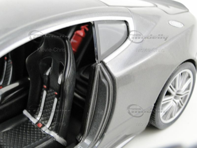 Das Foto zeigt ein Modellauto des Aston Martin DBS im Maßstab 1:18, das von Ertl hergestellt wurde. Dieses Sammlermodell ist Teil der Sammlung des Modelly-Mitglieds "Movie-Chris". Die Nachbildung ist äußerst detailgetreu und gibt die Merkmale des Originals präzise wieder. Auffällig sind die Räder, deren Speichen das Design des Originals nachbilden und möglicherweise von einem realen Hersteller wie Vossen inspiriert wurden. Das Modell zeigt auch die charakteristischen Merkmale des Aston Martin DBS, wie den Kühlergrill, die Scheinwerfer und die Seitenlinien. Die Lackierung des Modells scheint ein spezieller Grauton zu sein, der möglicherweise als "Tungsten Silver" bekannt ist und durch seine glänzende und gleichmäßige Oberfläche besticht. Die Detailgenauigkeit des Innenraums mit replizierten Sitzen und Armaturenbrett zeigt die hohe Qualität und Präzision, die bei der Herstellung dieses Modellautos Anwendung gefunden haben.