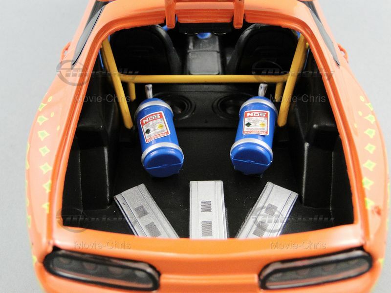 Das Modell dieses erkennbaren Fahrzeugs im Maßstab 1:18, hergestellt von Ertl, enthält zahlreiche Details des ikonischen Originalwagens. Dazu gehören die Felgen von OZ Racing, die dem Modell einen authentischen Look verleihen. Die entworfen von Tetsuya Tada und mit großem Augenmerk auf Details wie den auffälligen Rennstreifen bietet das Modell eine detailgetreue Wiedergabe der Filmversion. Die im Film gezeigte Supra wurde von der US-amerikanischen Tuningfirma Modern Image Signworks aufbereitet, welche 1993 gegründet wurde und für ihre auffälligen Fahrzeugdesigns weltweit bekannt ist. Die Kombination aus der sportlichen Gestaltung und der berühmten Lackierung macht das Modellauto zu einem Muss für Sammler und Fans von Tuningfahrzeugen.