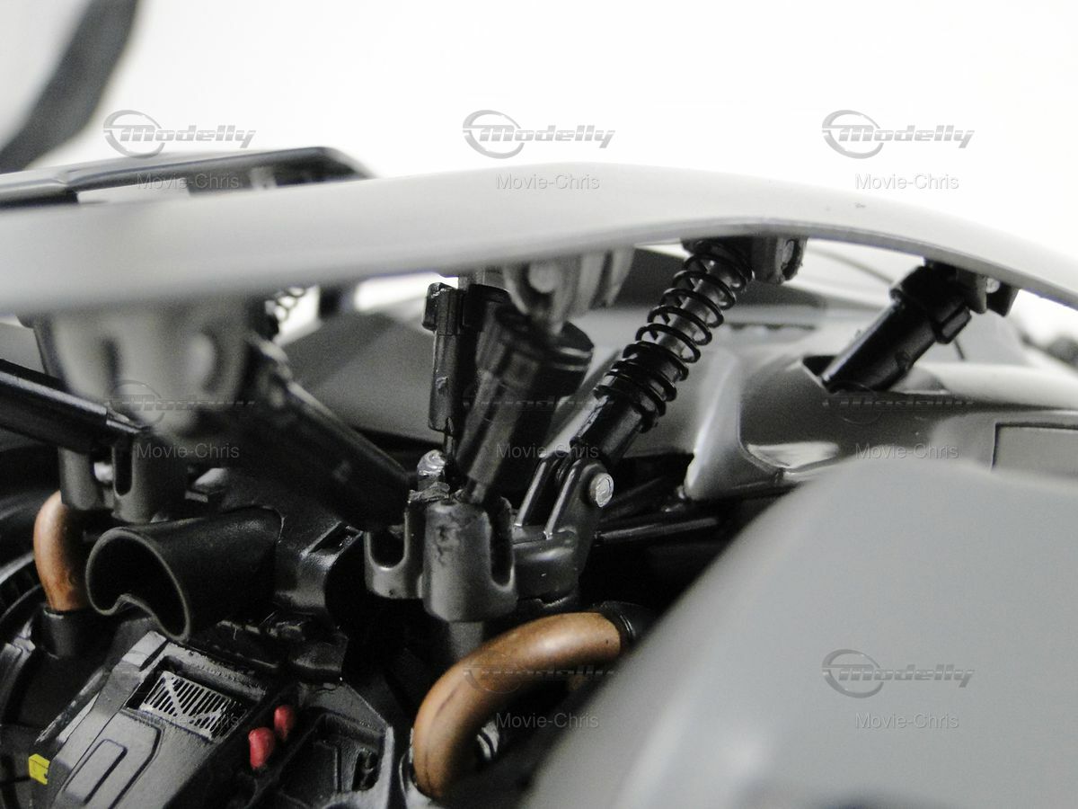 Das Modell ist super detailliert und sein Geld absolut wert. Das MG ist beweglich und drehbar, die Lufteinlässe (?) an der Front lassen sich aufklappen und natürlich ist die Kanzel zu öffnen. Vorderräder sind über einen Riegel an der Unterseite lenkbar. Die Flügel sind über filigrane Dämpfer und Federn beweglich.