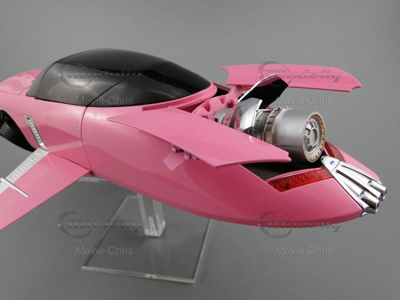 Die auffällige rosa Lackierung ist ein markanter Aspekt des Fahrzeugs und sofort erkennbar. Zusammen mit der futuristisch gestalteten Karosserie spiegelt es das Design der frühen 2000er-Jahre wider, in denen das Original entworfen wurde. Die Details an der Karosserie, wie die seitlichen Lufteinlässe aus Metall, verstärken das aerodynamische Erscheinungsbild. Auch der transparente Ständer, der das Poster des Films präsentiert, ergänzt das Gesamtpaket des Sammlerstücks hervorragend. Vom Sammlerwert her ragt dieses limitierte Modellauto durch den hohen Wiedererkennungswert des Originals und die Qualität der Fertigung durch Sunstar heraus.