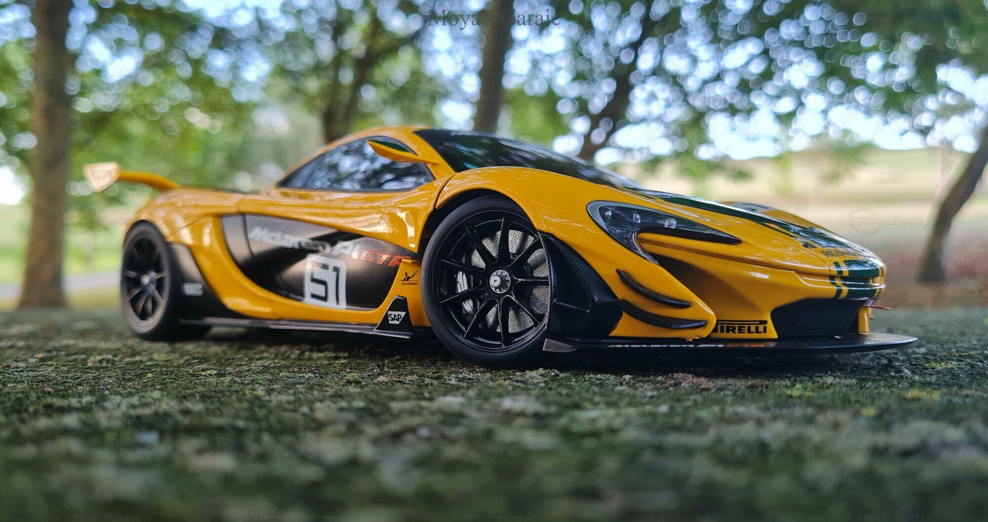 Das Modell des McLaren P1 GTR in 1:18 Maßstab von AUTOart stellt eine faszinierende Nachbildung eines der beeindruckendsten Supersportwagen der Geschichte dar. Es ist erkennbar, dass besondere Aufmerksamkeit auf die Nachbildung der technischen und ästhetischen Details gelegt wurde, was das Modell besonders wertvoll für Sammler macht. Die eingefangenen Fotos von "MoyaGaraje" zeigen das Modell vor einer natürlichen Umgebung, was die akribischen Details und die realistische Erscheinung des Fahrzeugs noch mehr zur Geltung bringt. Von den detaillierten Bremsen bis hin zu den authentischen Lufteinlässen und dem markanten Heckflügel bietet dieses Modell eine umfassende Darstellung eines ikonischen Fahrzeugs.