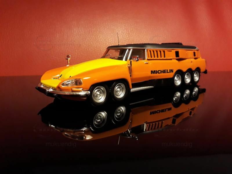 Eine DS wurde auf fünf Achsen umgebaut, beide Vorderachsen sind lenkbar, alle sind hydropneumatisch gefedert.