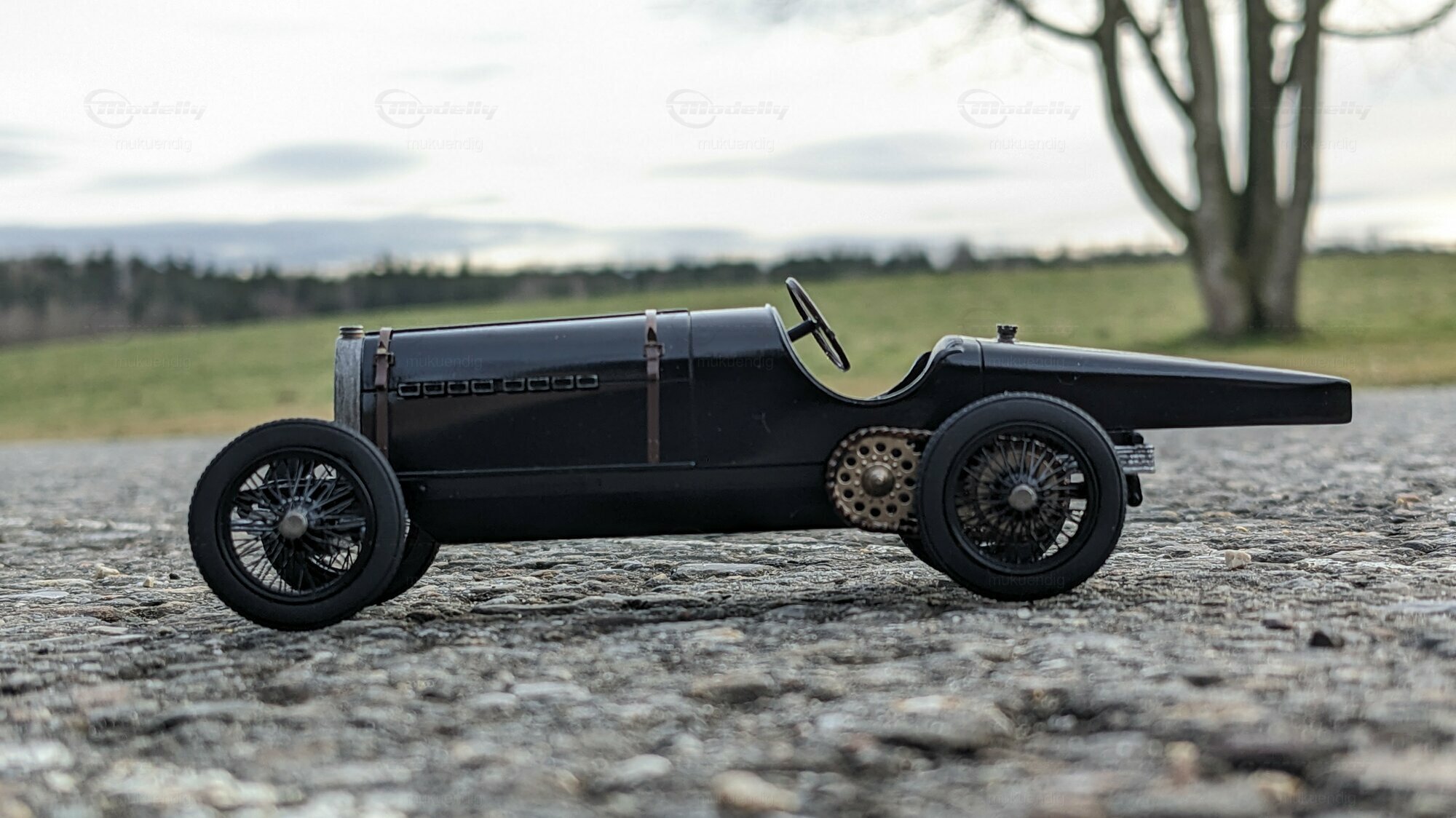 Rennwagen-Chassis von Diatto, 2x Vierzylinder von Bugatti, total 14,5l und 250 PS