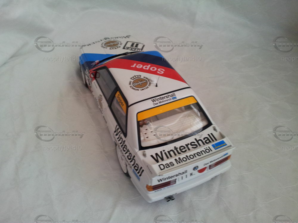 Das Modell besticht durch seine präzise Verarbeitung und die originalgetreue Replikation des BMW M3 (E30) DTM #11. Die Lackierung umfasst die klassischen BMW Motorsport Farben Blau, Violett und Rot, die dynamisch über die Karosserie verlaufen. Wichtige Sponsorenlogos wie Wintershell und Yokohama sind klar und detailliert sichtbar, was die Authentizität des Modells steigert. Die Nummer 11 sowie der Name des Fahrers Soper sind auf der Windschutzscheibe und den Seitenscheiben angebracht und sorgen für eine zusätzliche Detaillierung. Für Sammler bietet dieses Modell eine hervorragende Gelegenheit, ein Stück Motorsportgeschichte in die eigene Sammlung aufzunehmen.
