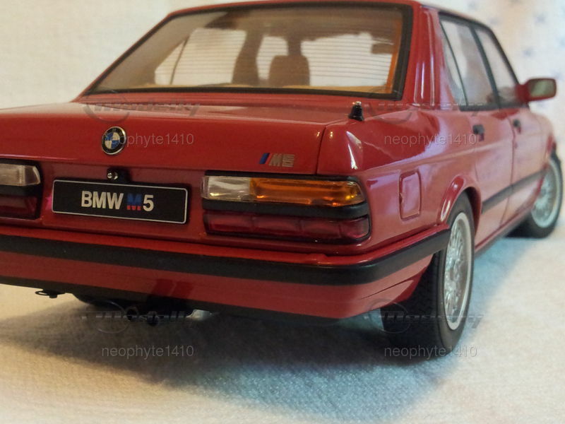 Dieses Modellauto im 1:18 Maßstab von AUTOart ist ein hervorragendes Beispiel für detaillierte Nachbildungen klassischer Automobile. Es gehört zur Sammlung von Modelly-Mitglied "neophyte1410". Das Modell besticht durch seine rote Lackierung, die ein markantes Merkmal des Originals ist. Die präzise Nachbildung umfasst alle charakteristischen Details, einschließlich der feinen Nieren des Kühlergrills, der M5-Embleme und des sportlichen Innenraums. Die detailgetreuen BBS-Felgen und die realistisch nachgebildeten Scheinwerfer und Rückleuchten zeigen das hohe Maß an Detailtreue des Modells von AUTOart.