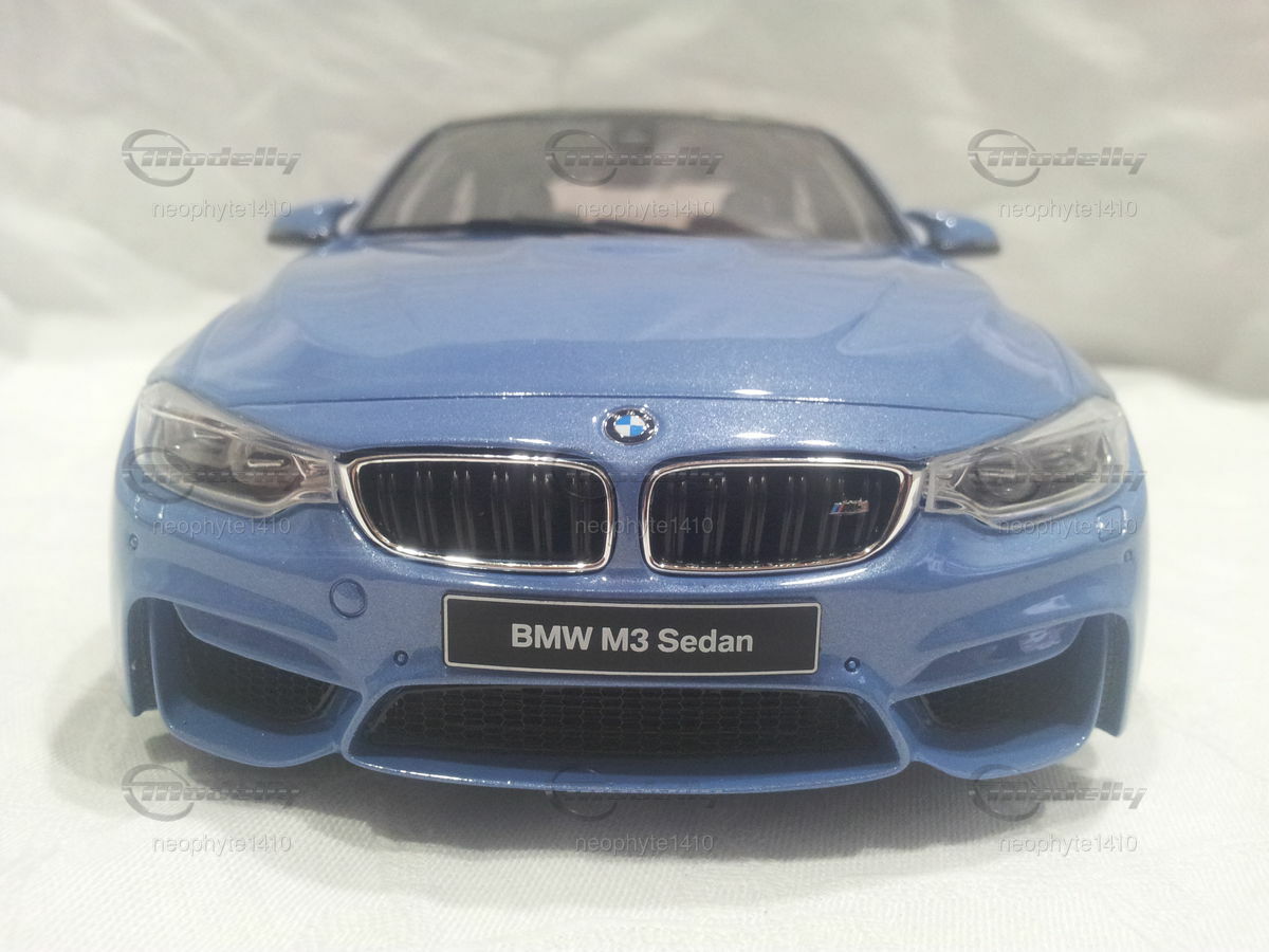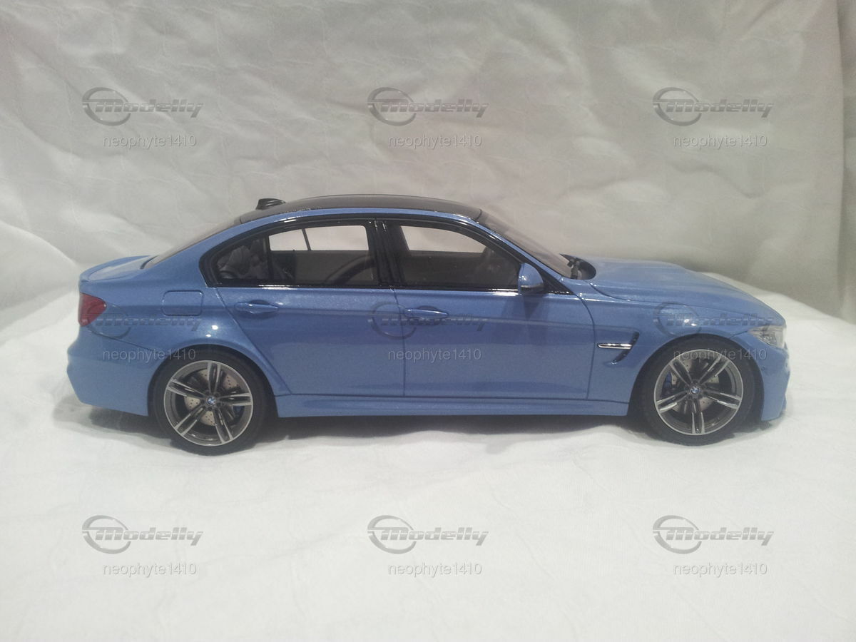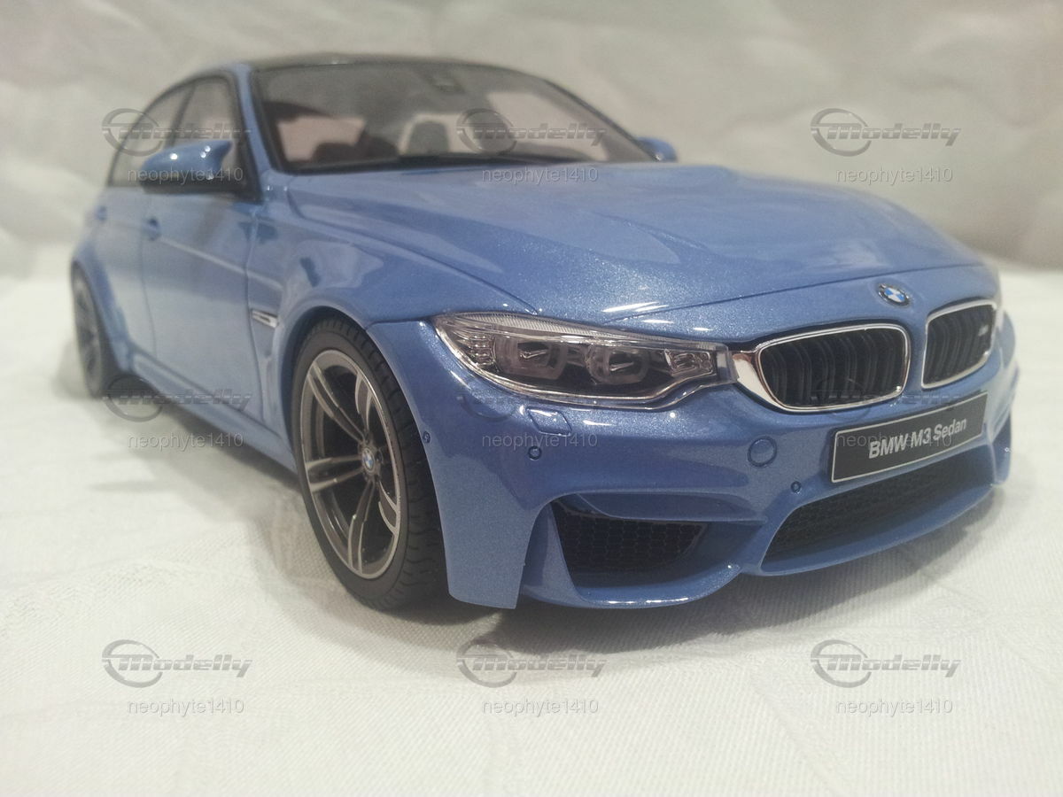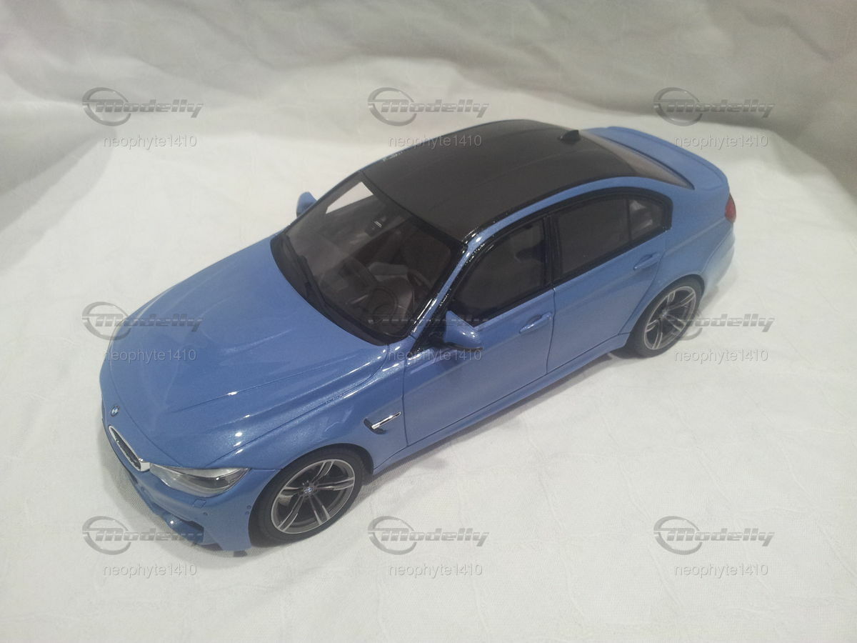 Dieses 1:18 Modelleauto, hergestellt von GT Spirit, basiert auf der erwähnten BMW M3 Limousine (F80) und zeigt eine hohe detailtreue Nachbildung. Der Sammler "neophyte1410" präsentiert dieses Modell in seiner Kollektion, und es besticht durch präzise Nachbildungen aller wesentlichen Merkmale des Originals. Das Modell besteht aus hochwertigem Porzellan und zeichnet sich durch eine exakte Umsetzung der Karosserielinien und Proportionen aus. Es zeigt die typische Blau Metallic-Lackierung, die speziell für den M3 entwickelt wurde, sowie die detailgetreue Wiedergabe des Kühlergrills, der Scheinwerfer und der prägnanten Motorhaube mit den charakteristischen Lufteinlässen.