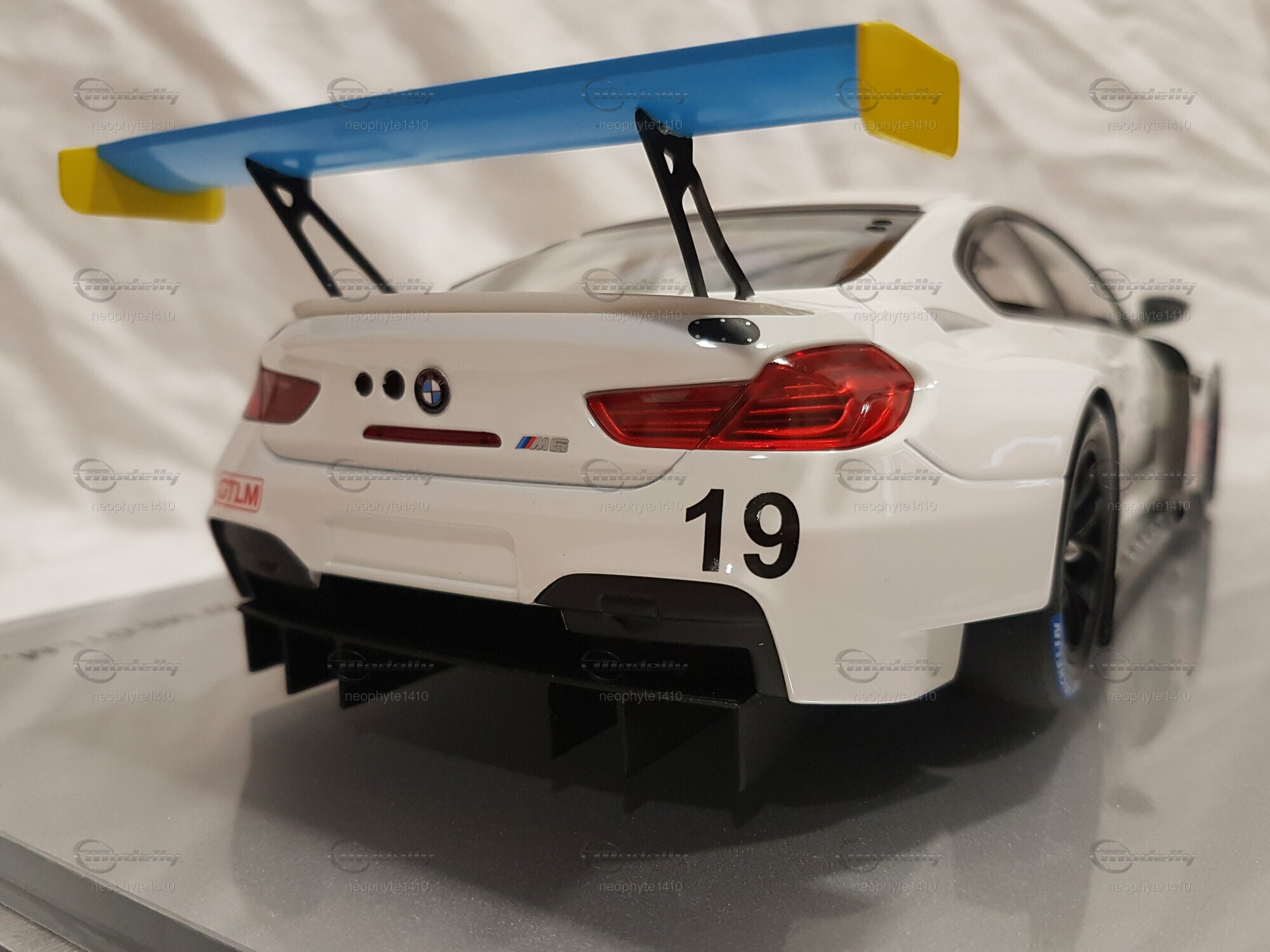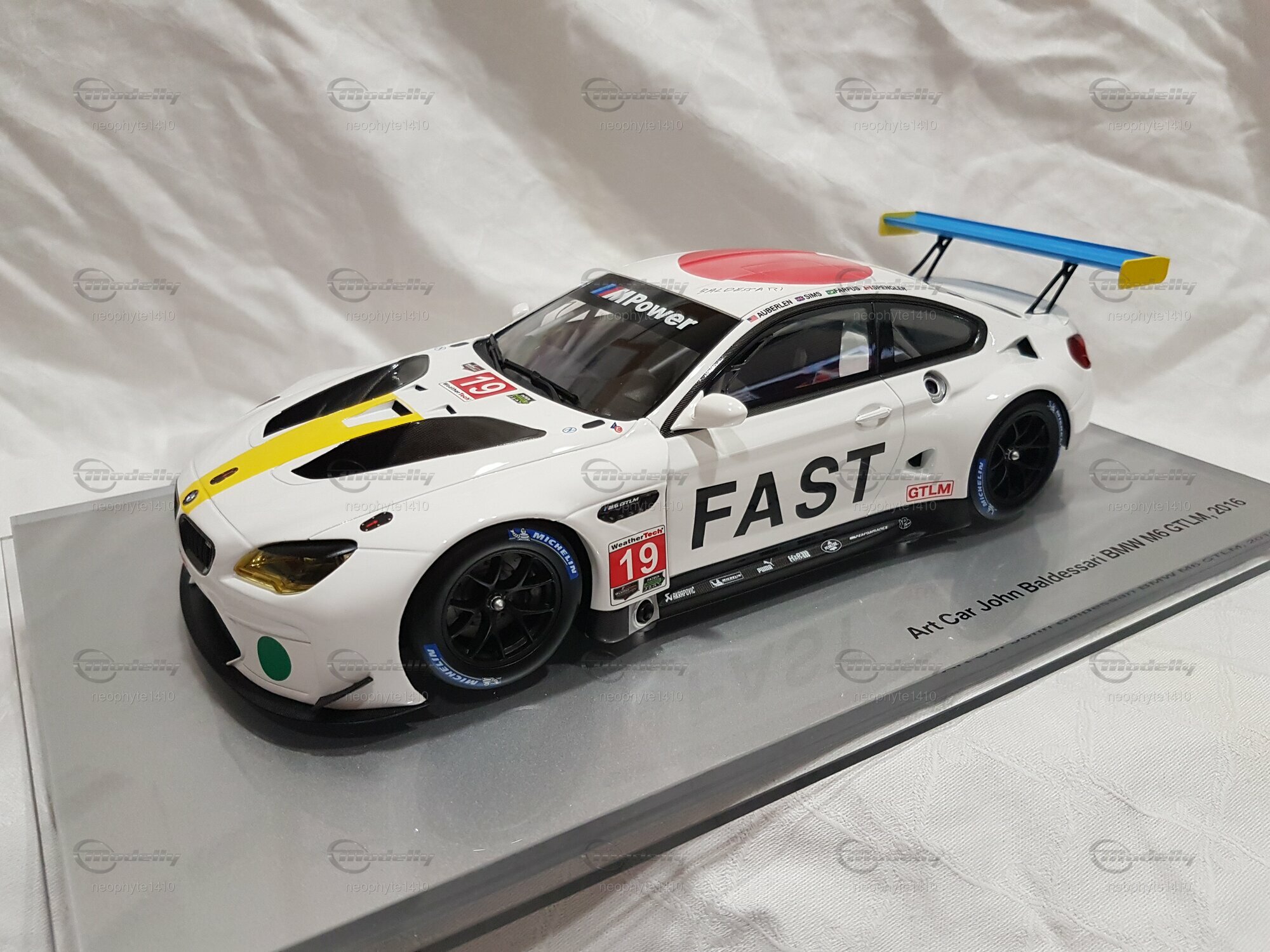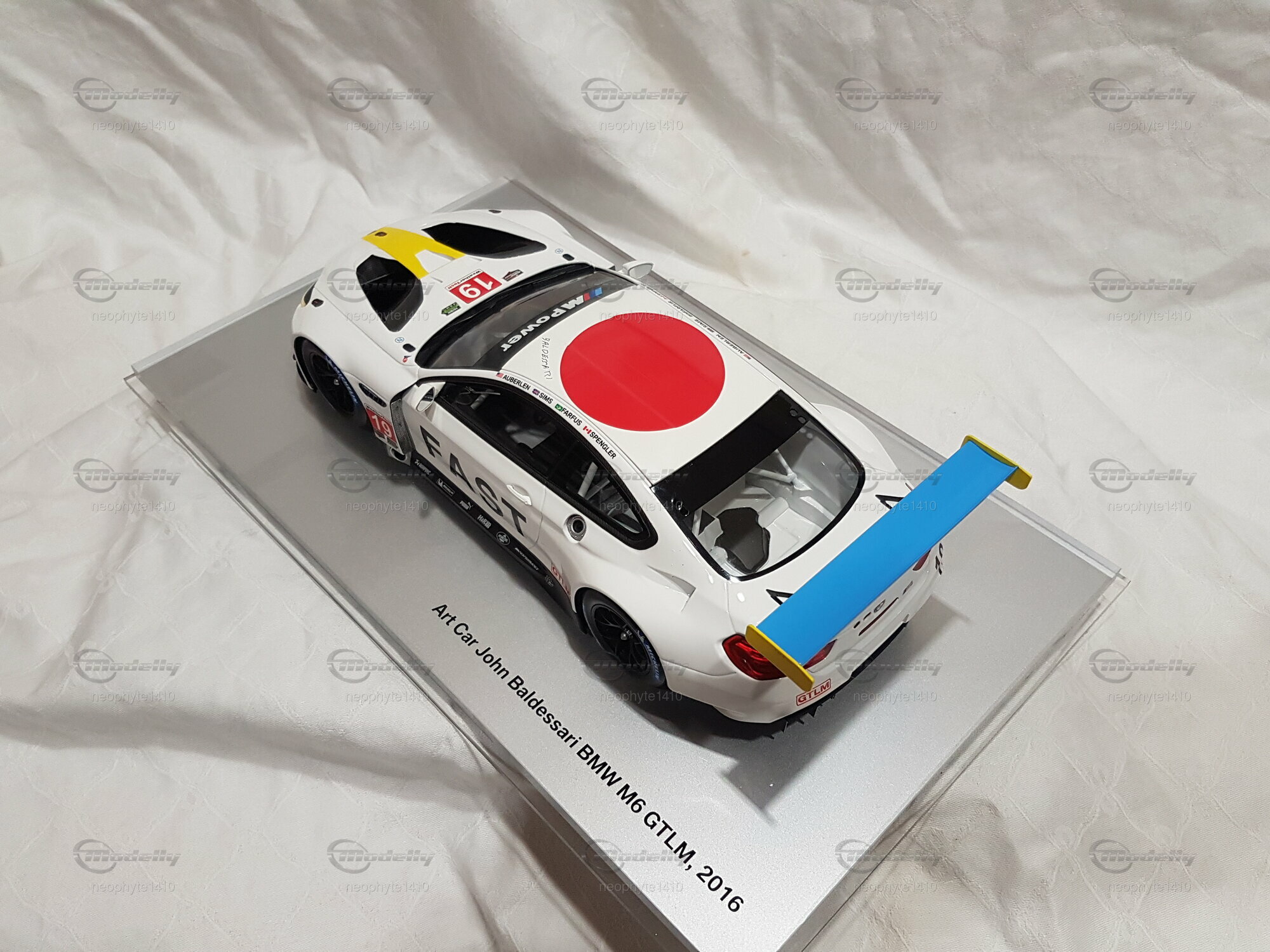 Der BMW M6 GTLM basiert auf dem BMW M6 Coupé aus der dritten Generation F13, die von 2011 bis 2018 produziert wurde. Dieser Wagen ist das letzte Modell der M6-Reihe, die ursprünglich durch den legendären BMW M1 inspiriert wurde. Der M6 GTLM repräsentiert BMW's Engagement im internationalen GT-Rennsport und wurde speziell für Langstreckenrennen entworfen. Ein bemerkenswerter Aspekt dieses Fahrzeuges ist die Zusammenarbeit mit renommierten Künstlern bei der Gestaltung der sogenannten Art Cars. Eines dieser Kunstwerke ist der BMW M6 GTLM John Baldessari #19, das 2017 bei den 24 Stunden von Daytona vorgestellt wurde.