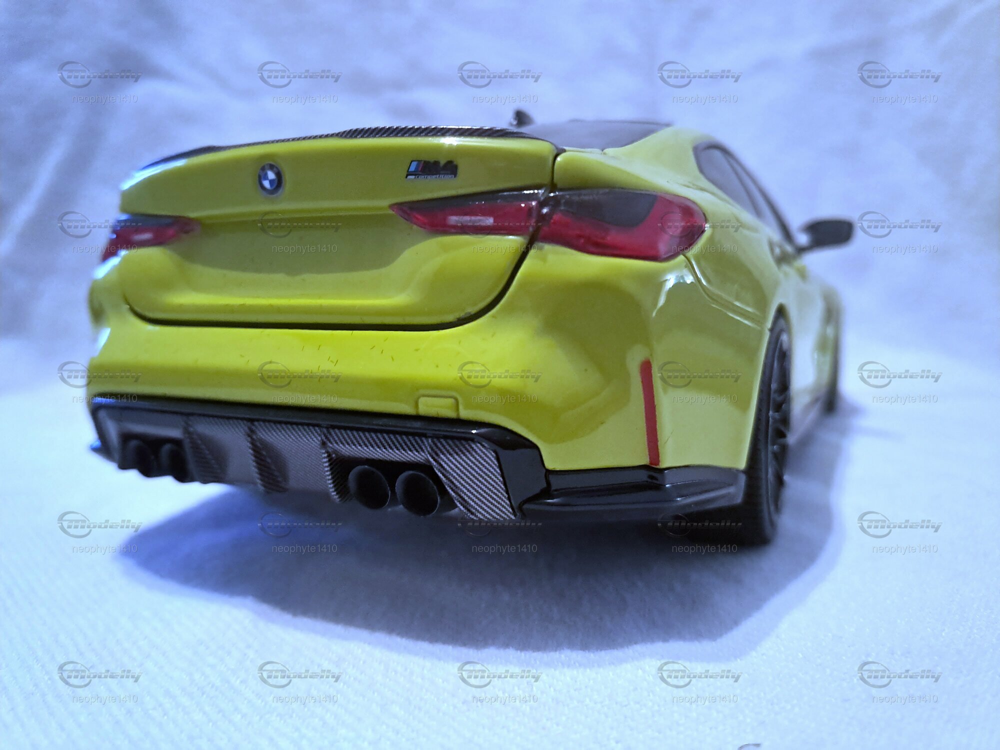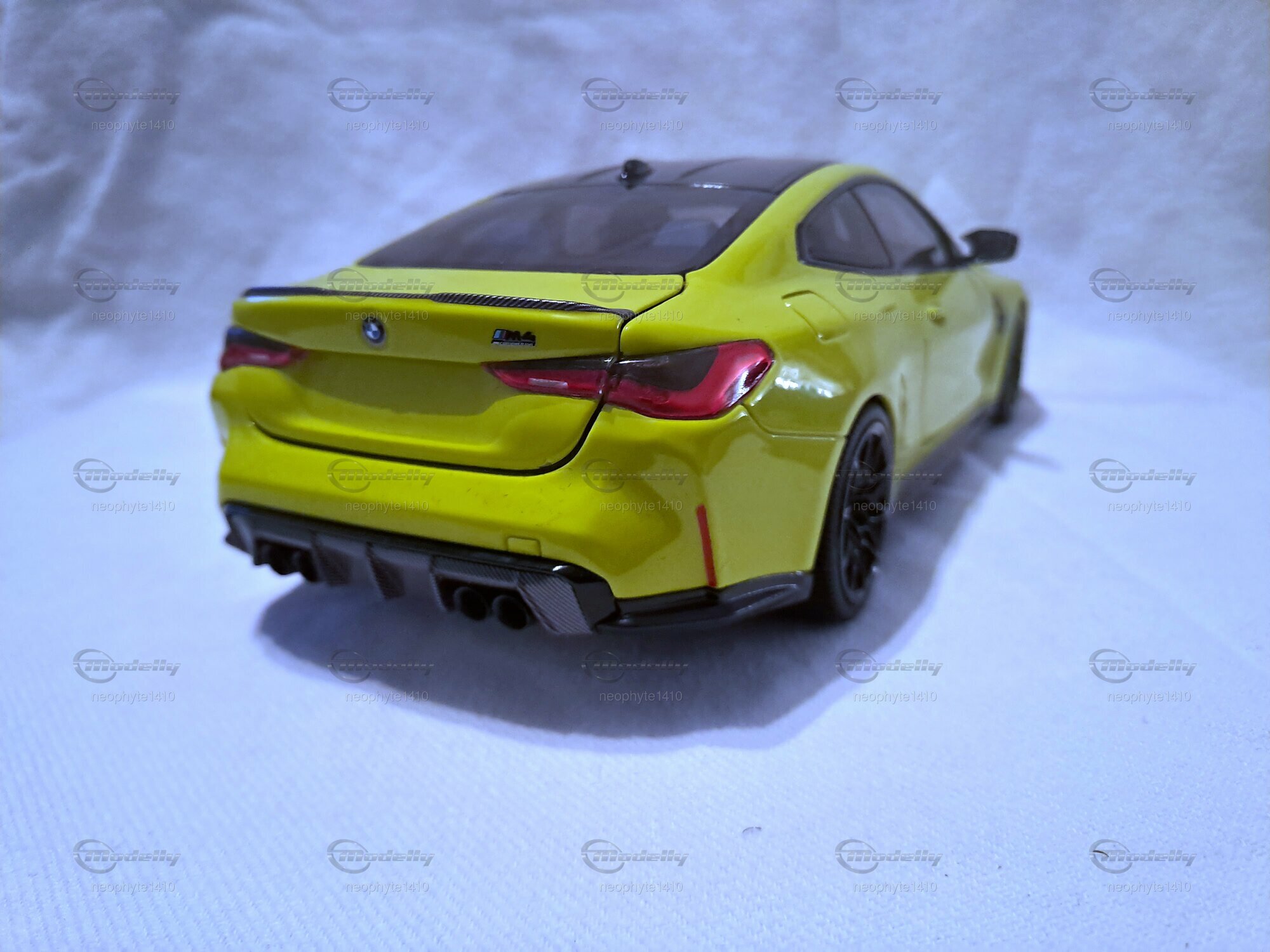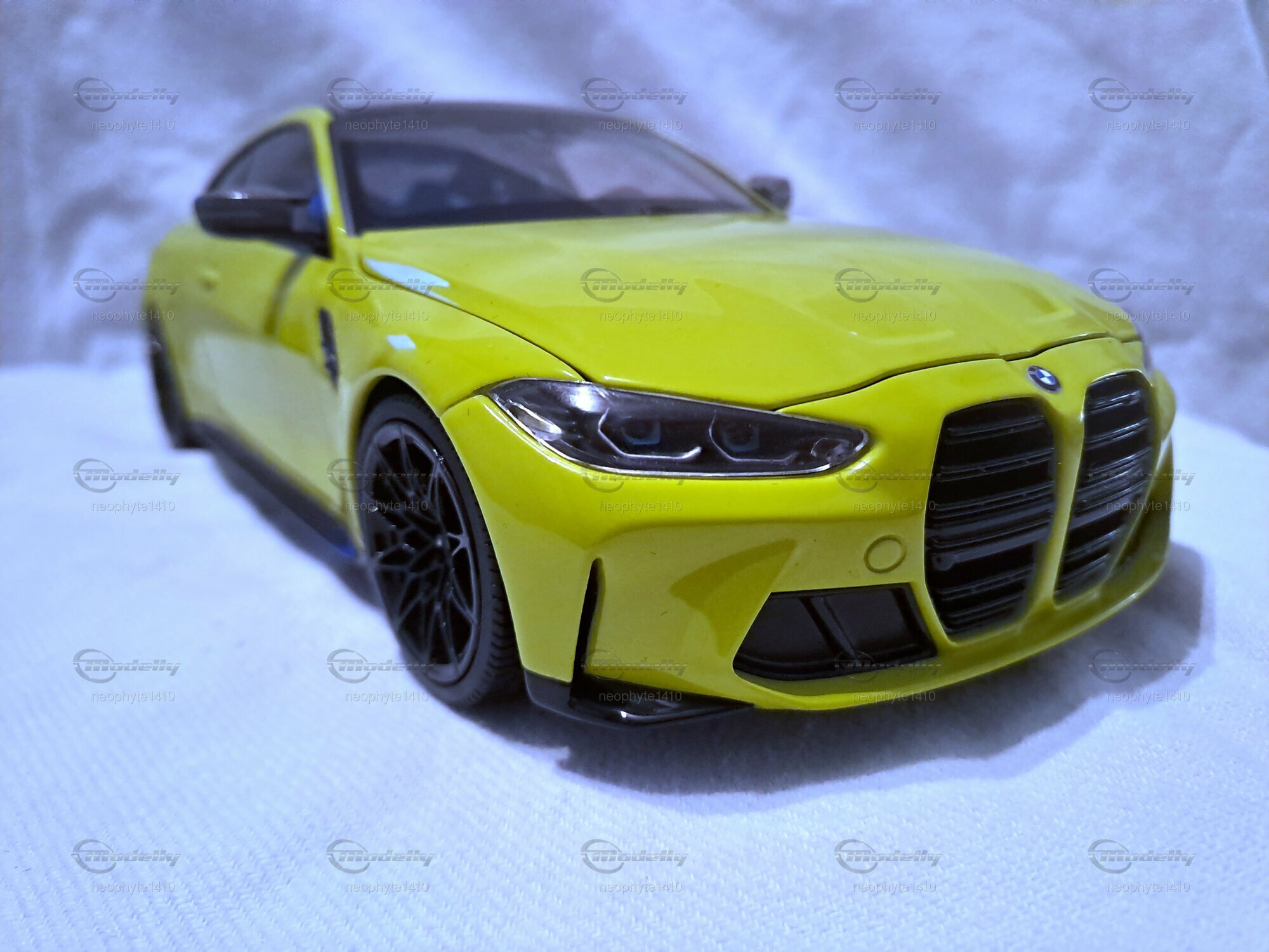 Für Modellautosammler ist das Modell des BMW M4 (G82) im 1:18 Maßstab von Minichamps ein wahres Juwel. Dieses Modellauto ist aus hochwertigem Druckguss-Material gefertigt und zeigt beeindruckende Detailgenauigkeit, wie sie auf den Fotos des Mitglieds "neophyte1410" von Modelly zu sehen ist. Der Klarlack auf der leuchtenden gelben Oberfläche des Autos verleiht dem Modell einen authentischen und glänzenden Look. Die Türen, die Motorhaube und der Kofferraum sind beweglich und geben den Blick auf den detaillierten Innenraum und Motorbereich frei. Besonders die schwarze Carbon-Optik an den Spiegeln und am Dach sowie die filigranen schwarzen Felgen sind besondere Highlights des Modells.