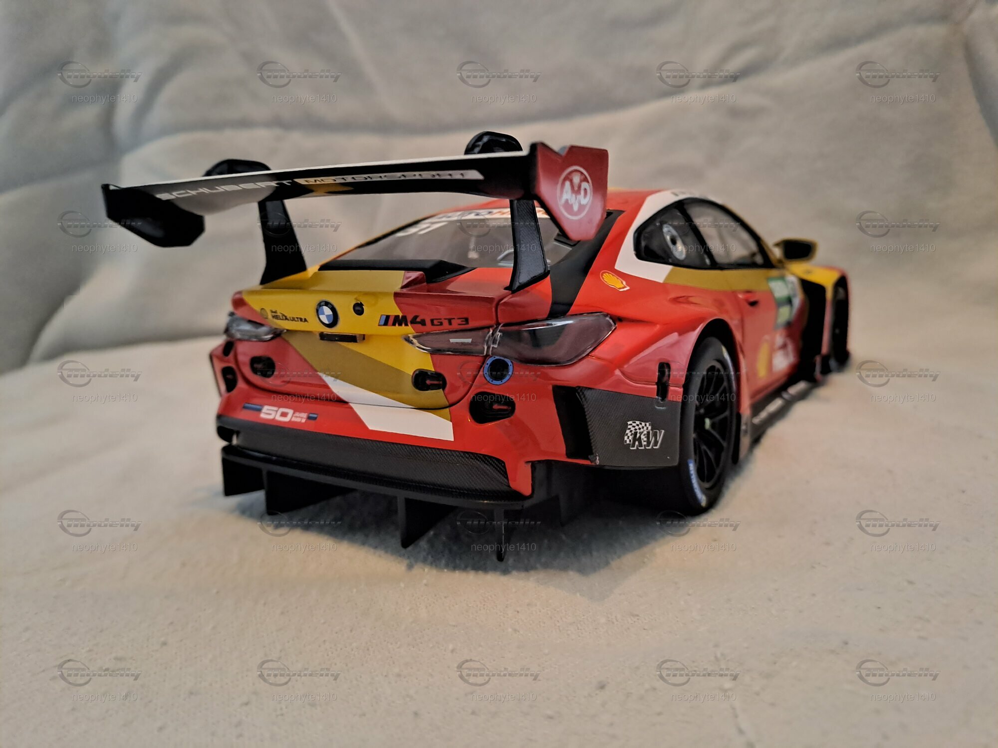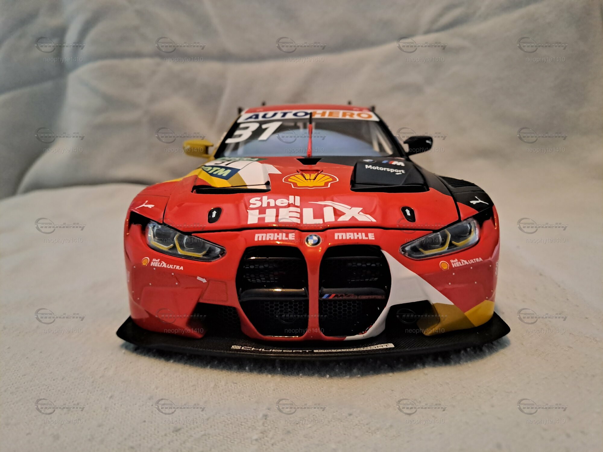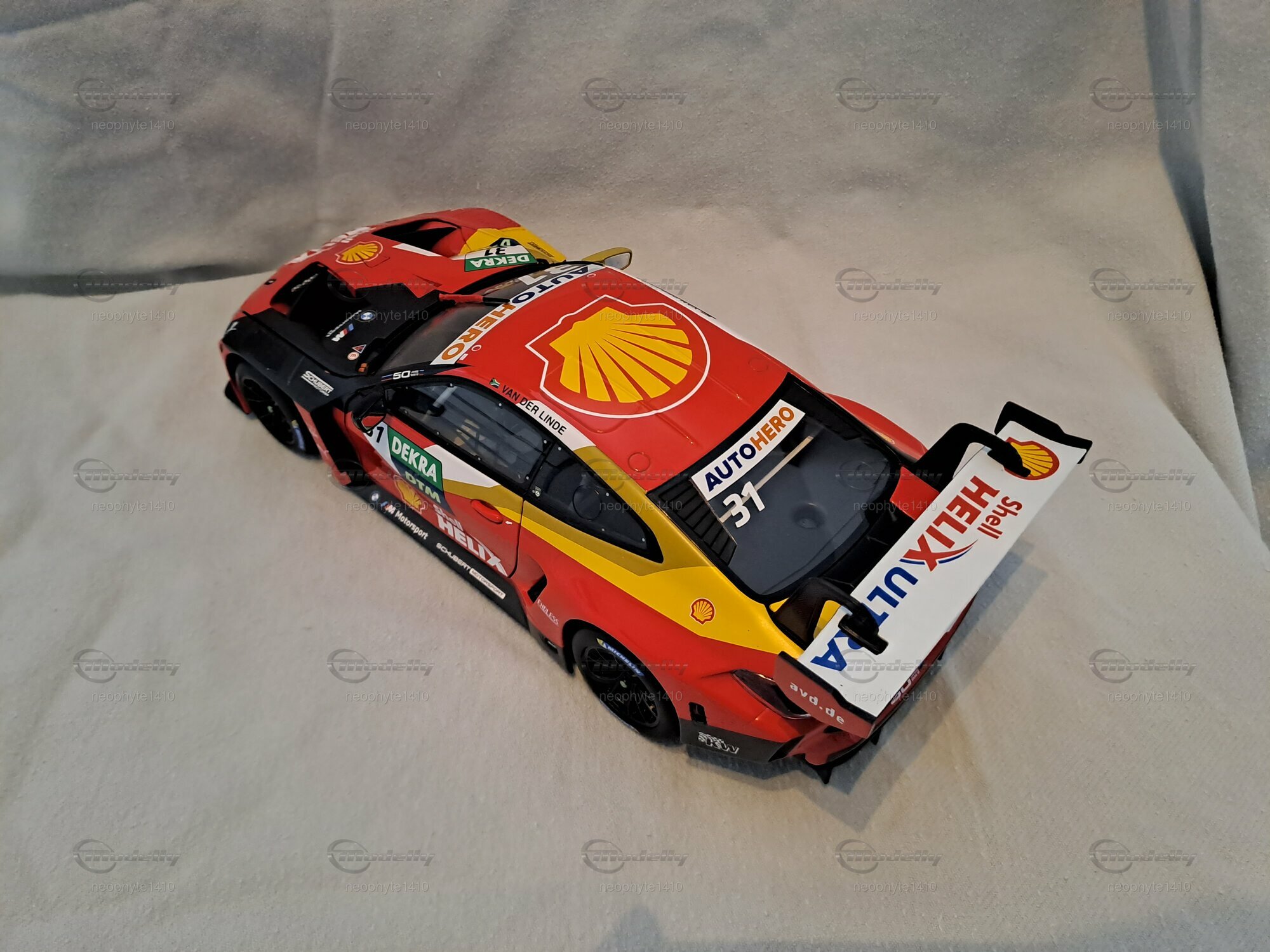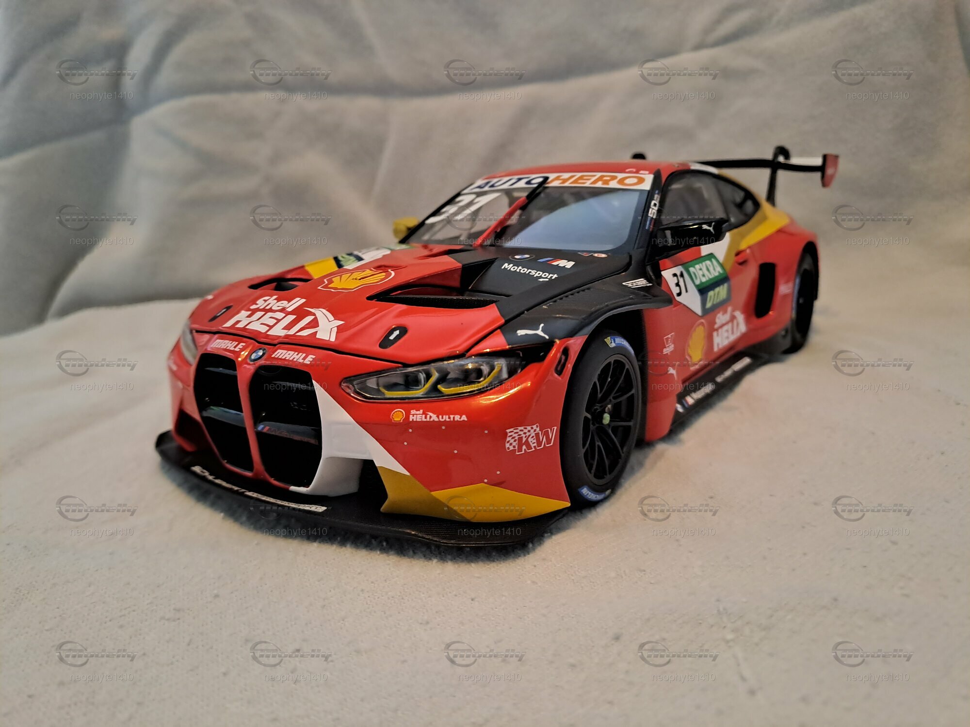 Das abgebildete Modellauto, das von Minichamps im Maßstab 1:18 hergestellt wurde, ist eine detailgetreue Miniatur des BMW M4 GT3. Dieses Modellauto besteht aus dem Material Diecast, das für seine Haltbarkeit und Detailtreue bekannt ist. Die Miniatur, die Teil der Sammlung des Modelly-Mitglieds "neophyte1410" ist, zeigt akribisch nachempfundene Details. Bemerkenswert sind beispielsweise die akkurat platzierten Sponsorenlogos sowie die originalgetreue Nachbildung der aerodynamischen Details, die den BMW M4 GT3 so erfolgreich machen.