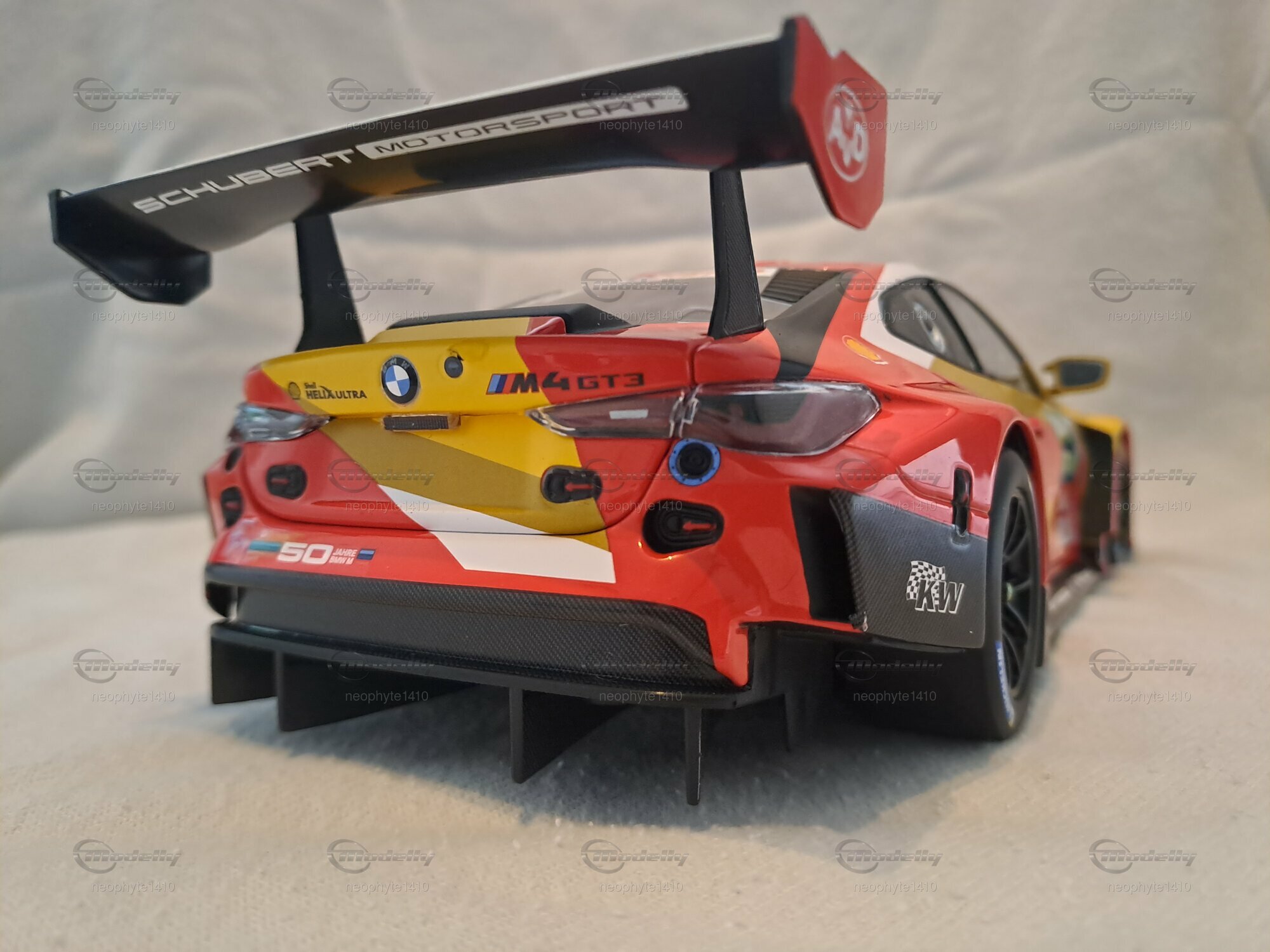 Das Original, auf dem das Modellauto basiert, ist der BMW M4 GT3 in seiner Meistervariante. Der BMW M4 GT3 wurde im Jahr 2021 vorgestellt und ist Teil der sechsten Generation der M4-Modelle. Entwickelt als Nachfolger des BMW M6 GT3, bietet der BMW M4 GT3 eine verbesserte Aerodynamik, verbesserte Effizienz und ein besseres Handling, was ihn zu einem der leistungsstärksten Rennwagen seiner Kategorie macht. Der BMW M4 GT3 wird durch einen 3,0-Liter-Reihensechszylinder-Motor mit M TwinPower Turbo-Technologie angetrieben, der eine Leistung von über 500 PS hat.