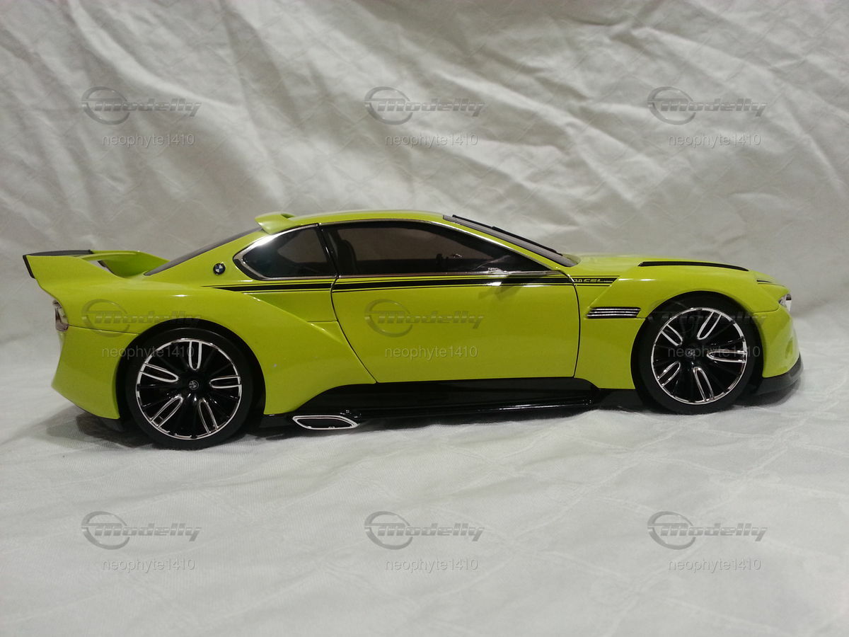 Das hier vorgestellte Modellauto im Maßstab 1:18, hergestellt von Norev, ist eine detailgetreue Nachbildung des BMW 3.0 CSL Hommage und befindet sich in der Sammlung des Modelly-Mitglieds "neophyte1410". Es ist aus Diecast-Material gefertigt, was für eine hohe Detailtreue und Haltbarkeit sorgt. Auffällig ist die präzise Replikation der aerodynamischen Formen und Linien, die das Modell genauso beeindruckend machen wie das Original. Die Lackierung in einem hellen Grün sorgt für einen markanten Auftritt und unterstreicht die sportlichen Linien des Fahrzeugs. Besonders hervorzuheben sind die feine Umsetzung des Frontgrills und der charakteristischen Scheinwerfer, die dem Modell eine authentische Optik verleihen.