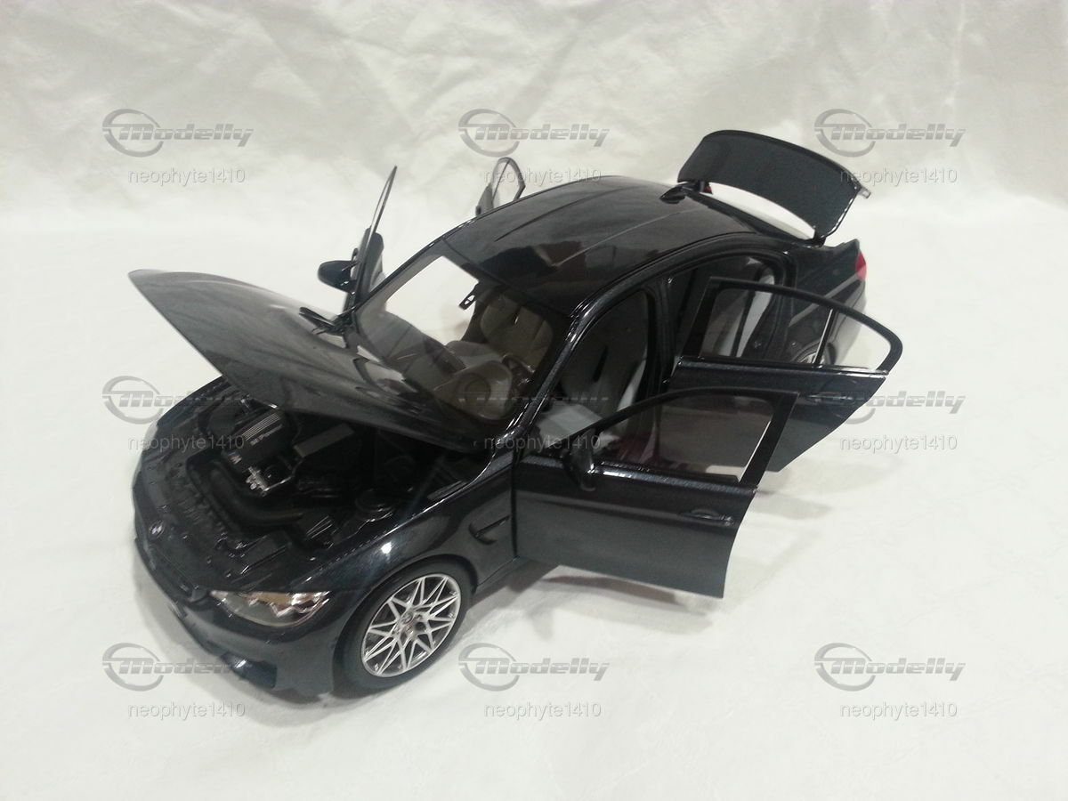 Auf den Fotos kann man die glänzende Lackierung des Modells erkennen, die an die Originalfarbe "Black Sapphire Metallic" erinnert. Die Beleuchtungseinheiten, die Front- und Heckstoßstangen sowie die kleinen M-Logos sind ebenso präzise proportioniert und verarbeitet. Der Innenraum, obwohl schwer vollständig sichtbar auf den Fotos, ist ebenso bis ins Detail ausgearbeitet, einschließlich der Sitzpolster und Armaturenbrettkomponenten.