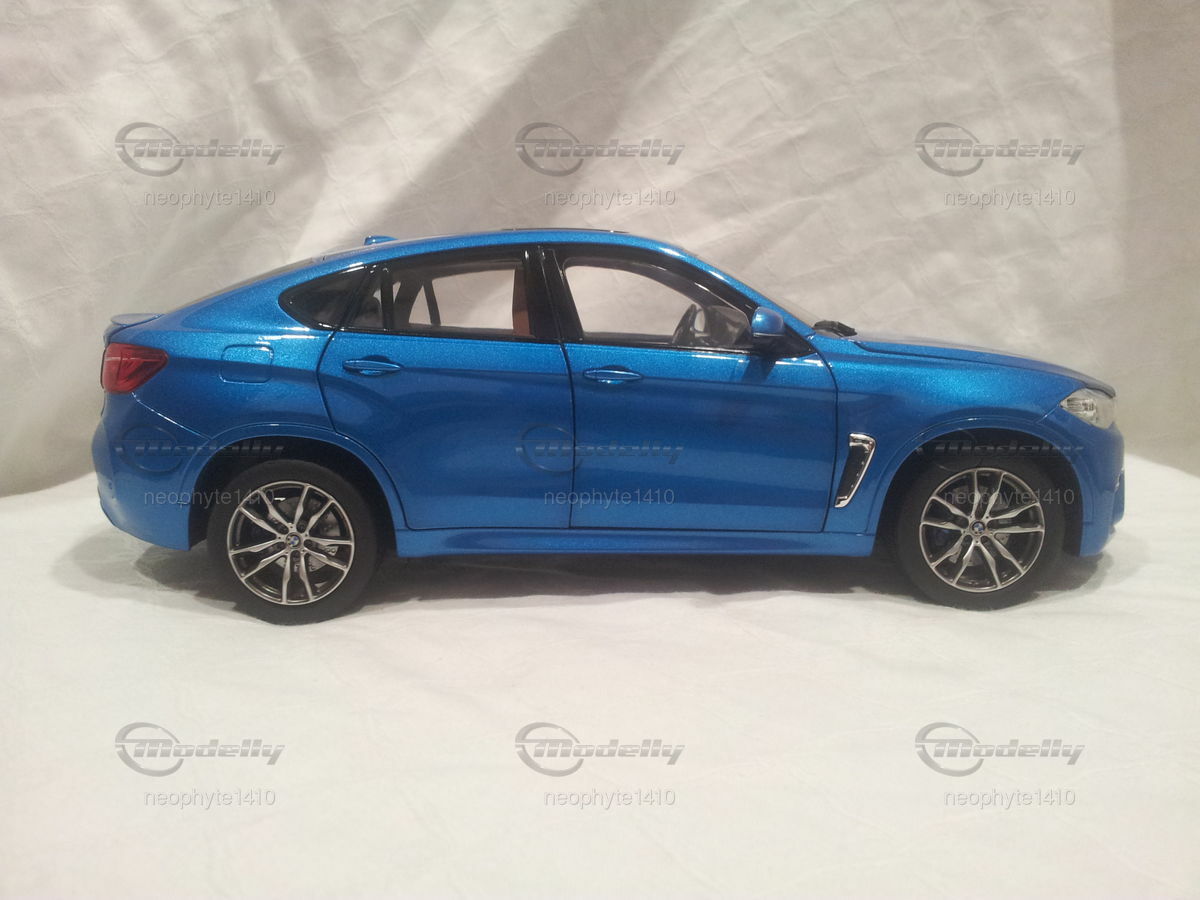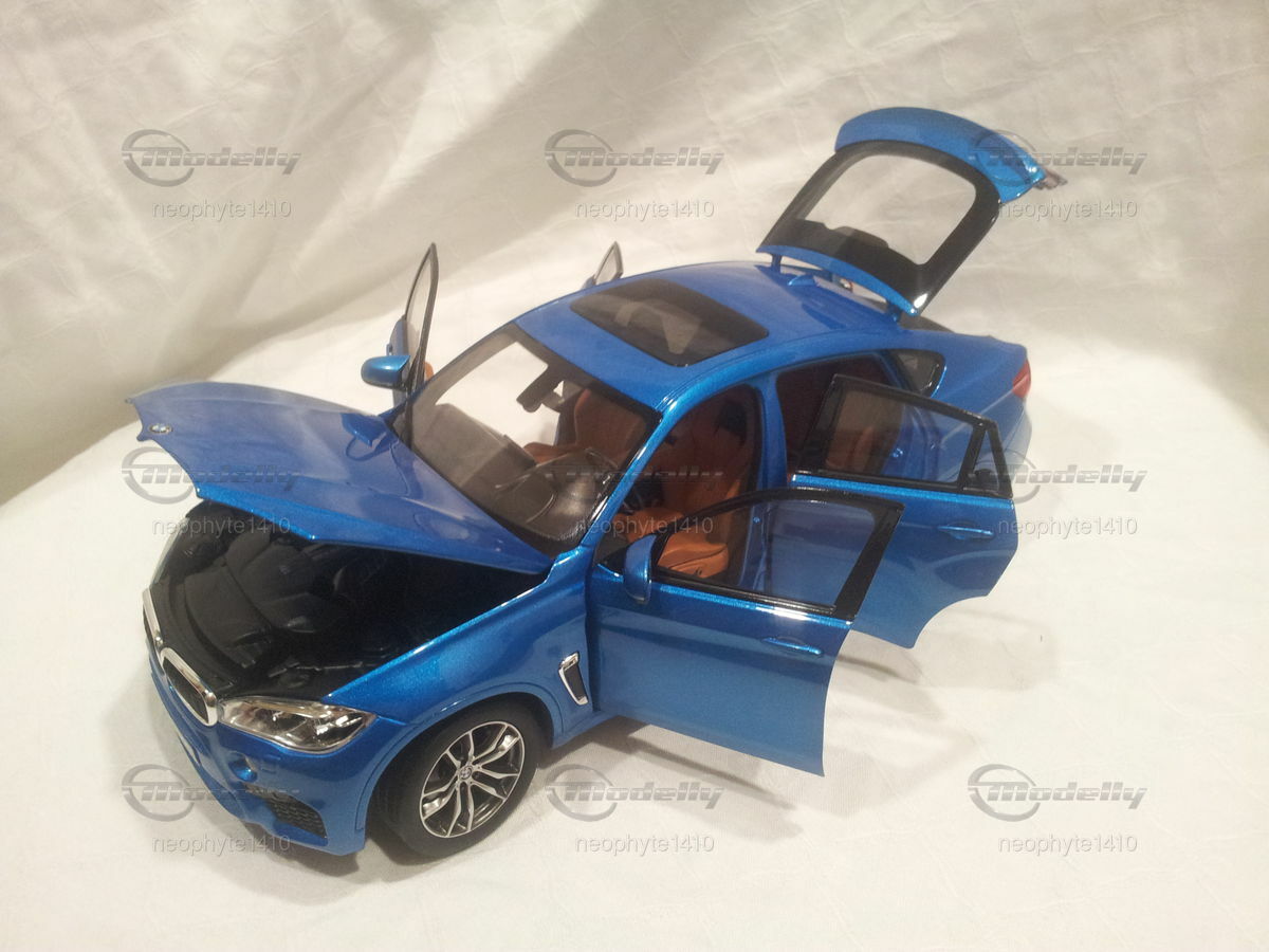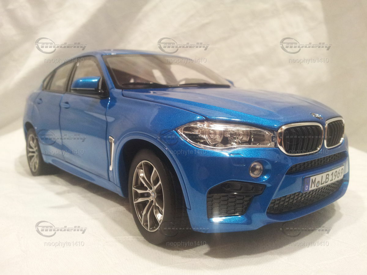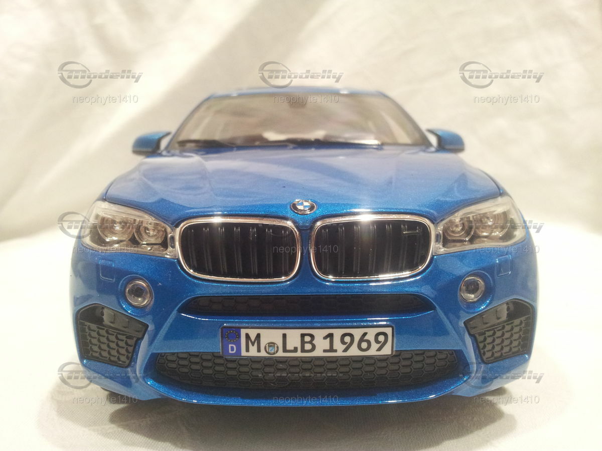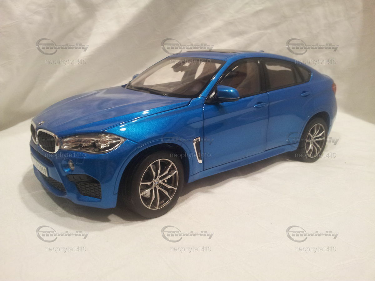 Das Modell der Sammlung von "neophyte1410" ist ein detailgetreues Abbild des BMW X6 M (F86) im Maßstab 1:18, gefertigt vom renommierten Hersteller Norev. Das Modell präsentiert eine äußerst präzise Nachbildung des Originals, was durch die akkurate Umsetung kleinerer Details wie der Scheinwerfer, der Fensterrahmen und der Außenspiegel sichtbar wird. Der glanzvolle, in Blau gehaltene Lack verleiht dem Modell eine hohe Ähnlichkeit zum Original. Die Felgen des Modells scheinen ebenfalls denen des Originals nachempfunden zu sein und tragen zur authentischen Optik bei. Besonderes Augenmerk wurde auf das M-Emblem an verschiedenen Stellen gelegt, darunter der Frontgrill und das Heck des Fahrzeugs. Das Modell bietet bewegliche Teile wie Türen und Motorhaube, was den Sammlerfreund besonders freuen dürfte. Seine exakte Verarbeitung und die Liebe zum Detail machen dieses Modell zu einem begehrten Sammlerstück.