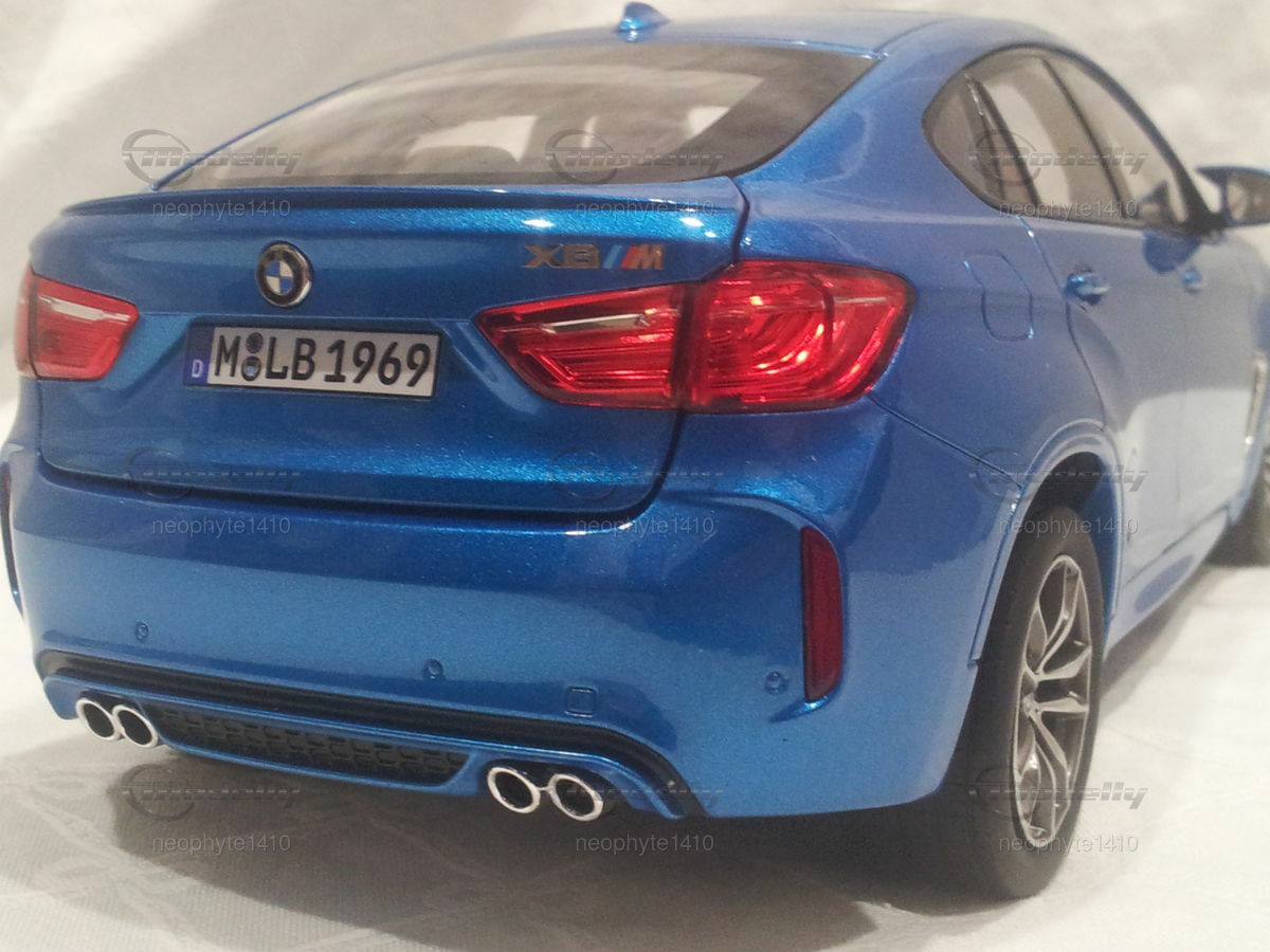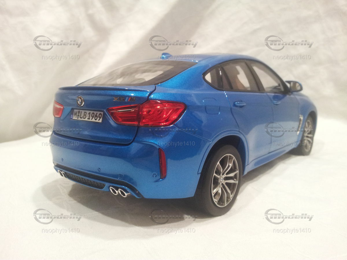Der visuelle Eindruck des Modellautos im Maßstab 1:18 von Norev ist beeindruckend. Die schimmernde blaue Lackierung fängt das Licht perfekt ein und verstärkt den sportlichen und zugleich eleganten Charakter des BMW X6 M (F86). Die scharfen Linien und die dynamische Silhouette sind detailgetreu nachgebildet und lassen das Herz jedes Modellautofans höher schlagen. Das Modell besticht durch seine realistische Darstellung der Scheinwerfer mit präzise modellierten Leuchtmitteln und Reflektoren. Die angebrachten Logos und Embleme sind klar und deutlich erkennbar, was zur Authentizität des Modells beiträgt. An der Heckansicht ist die Doppelauspuffanlage gut zu erkennen und vermittelt den mächtigen Sound des Originals. Für Sammler ist dieses Modell weit mehr als nur ein Miniaturauto – es ist ein Meisterwerk, das die Essenz des BMW X6 M perfekt einfängt und in kleinstem Maßstab erlebbar macht.