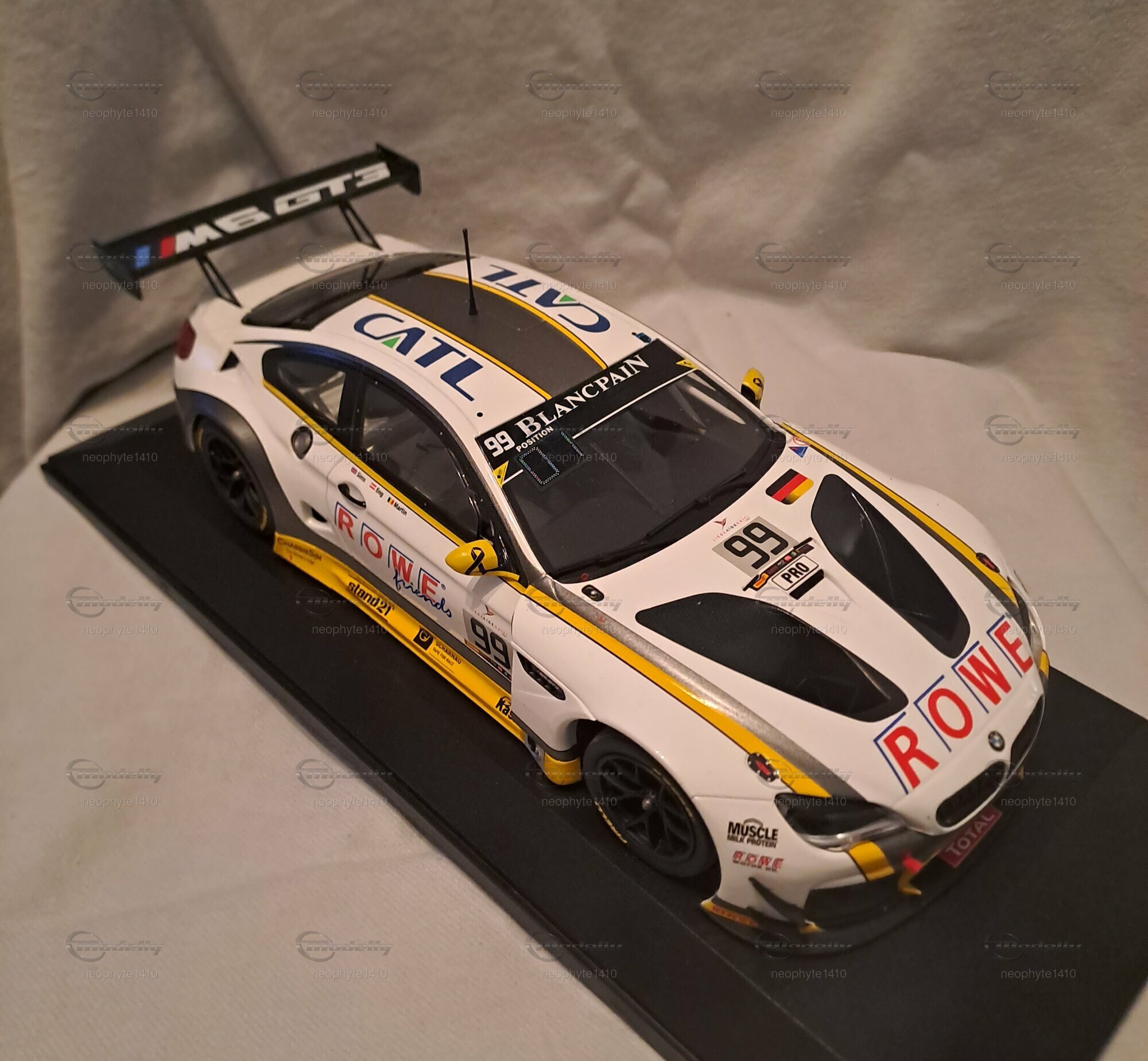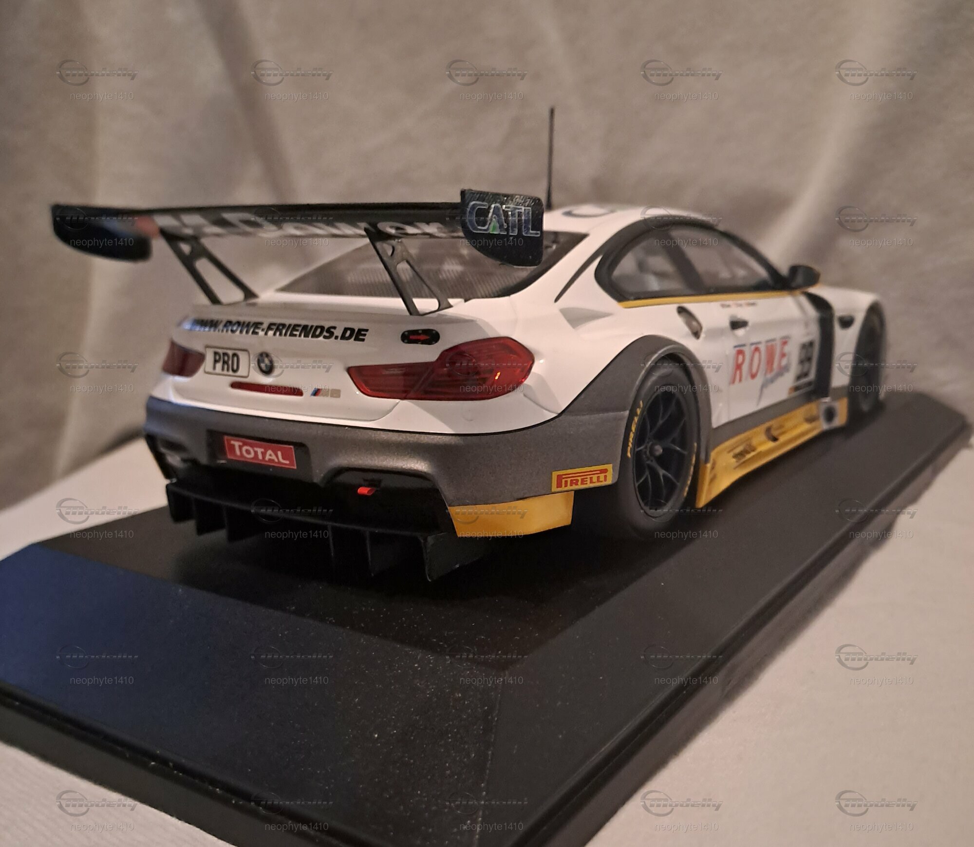 Dieses 1:18 Maßstab Modell von Minichamps ist nicht nur ein einfaches Sammlerstück, sondern fängt die Essenz und die Wettbewerbsfähigkeit des originalen BMW M6 GT3 perfekt ein. Die Verwendung von Diecast-Material sorgt für eine robuste und gleichzeitig hochwertig aussehende Nachbildung des Rennwagens. Jedes der 400 Stück weltweit ist ein Einzelstück, das durch seine limitierte Auflage und die akkurate Darstellung des Originals von Sammlern weltweit geschätzt wird. Das Modell, Teil der Sammlung von Modelly Mitglied "neophyte1410", ist auf einem hochwertigen Display-Ständer montiert, was seine Präsentation nochmals unterstreicht.