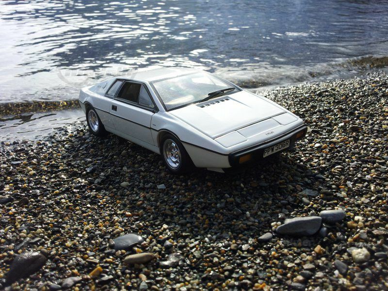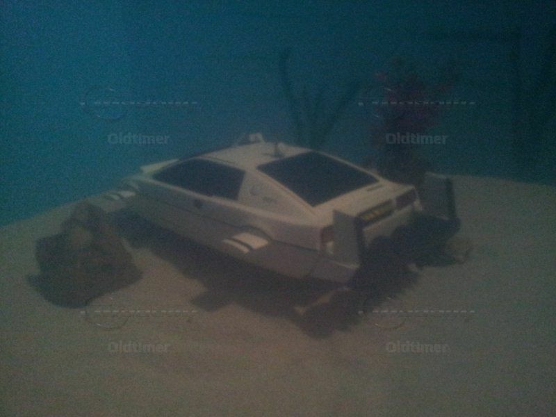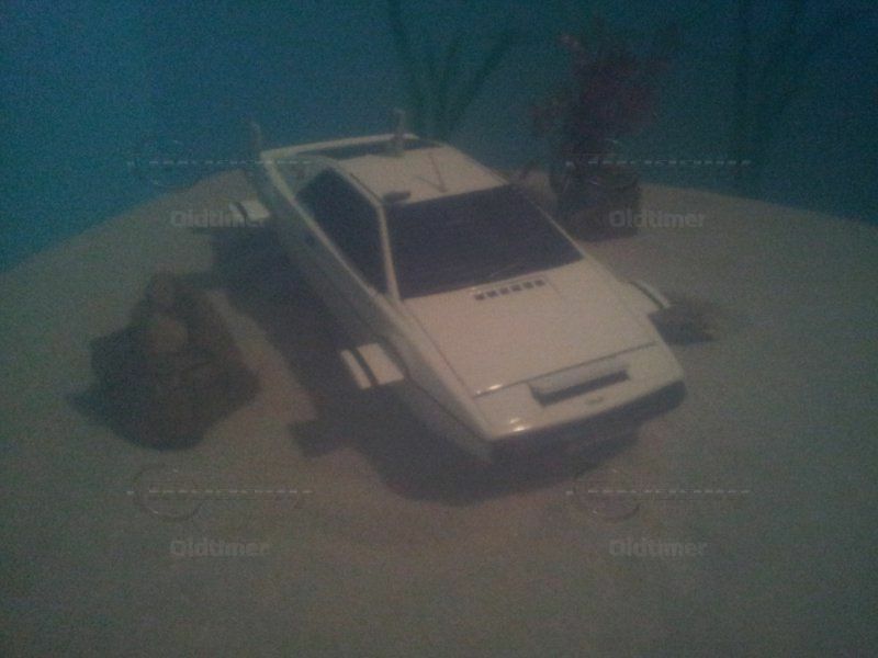 Das Modell: Viele der im James Bond Film "Der Spion der mich liebte" mit Roger Moore bekannten "Gadgets" sind eingearbeitet. Die Räder können eingeklappt werden und eine passende Abdeckung mit "Leitwerk und -Flossen" aufgesetzt. Abdeckklappe für Unterwasser-Minen ist ebenfalls vorhanden.