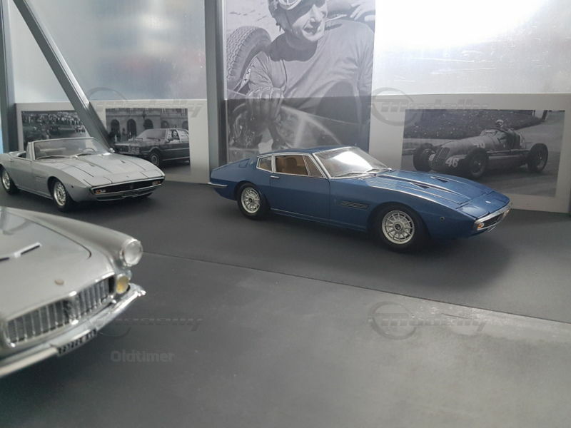 Die ersten 6 Fotos sind meine Umsetzung im Massstab 1:18 aus der Maserati Sondershow des Museums "Pantheon" in Basel. Die nachfolgenden 5 Fotos sind die "Vorlage" also Fotos der Originalausstellung.