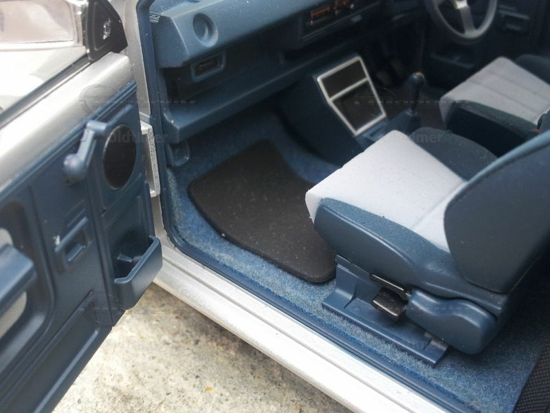 Ein wunderschön umgesetztes Modell von AUTOart. Kleinste Spaltmasse, eine perfekte Lackierung, zahlreiche Details im Innern wie Teppichboden mit zusätzlichen (echten!) Gummimatten, Sitze mit Stoffimitat, Kofferraum mit herausnehmbarem Teppichboden und darunterliegendem Reserverad. Die Motornachbildung ist einmalig und der Gesamteindruck perfekt.
