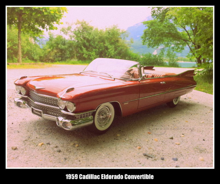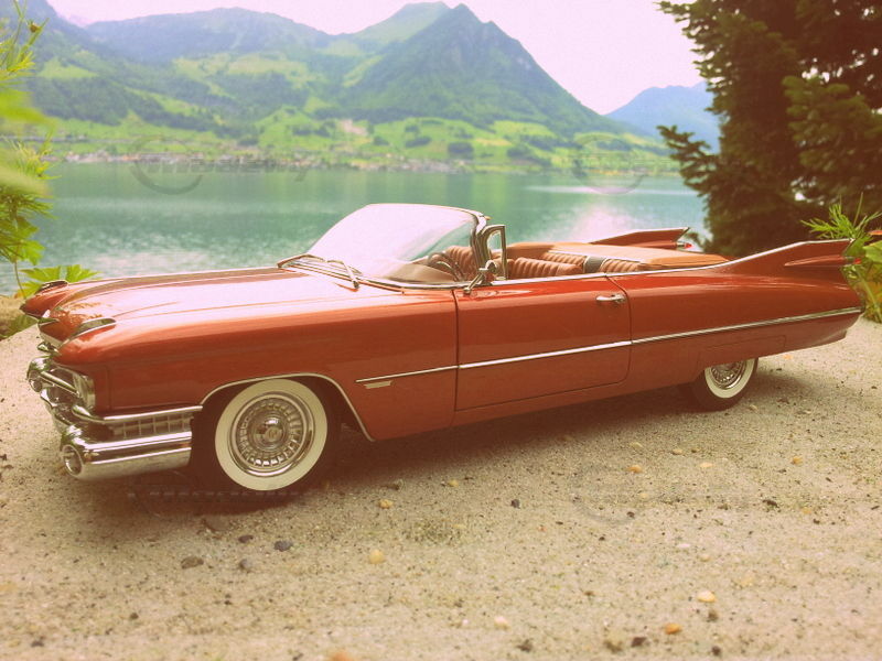 Der 1959 Cadillac Eldorado.....eine Ikone des Automobildesigns. Nie zuvor, und nie danach, waren die Heckflossen grösser als beim Cadillac der Serie 62, dem 1959er Eldorado Seville / Biarritz. 107cm hoch ragten die zugespitzten und an Raketen erinnernden Hecklichter in die Höhe.