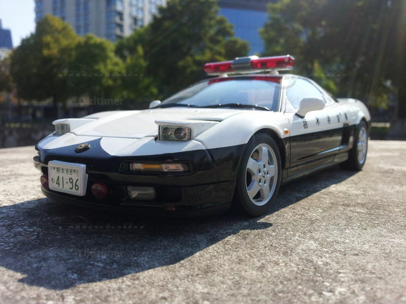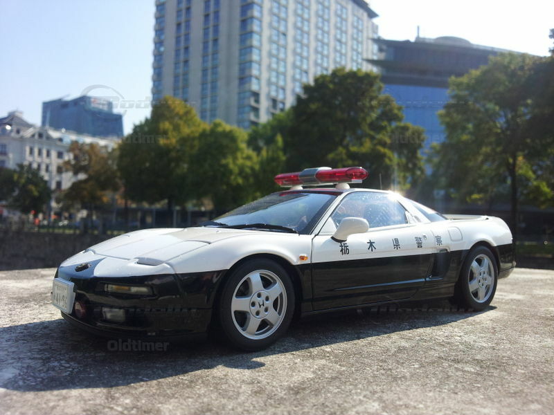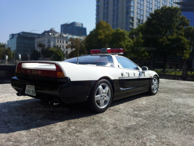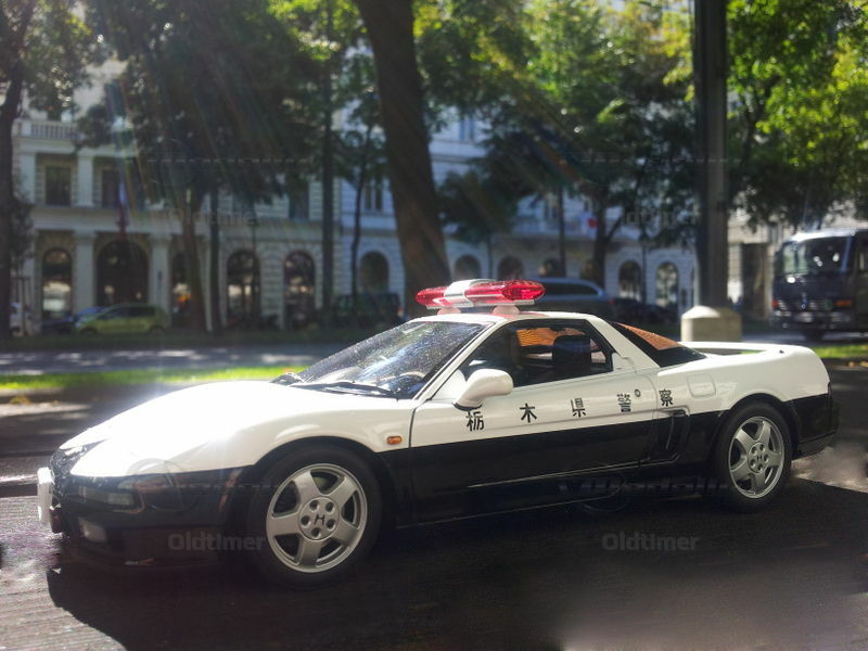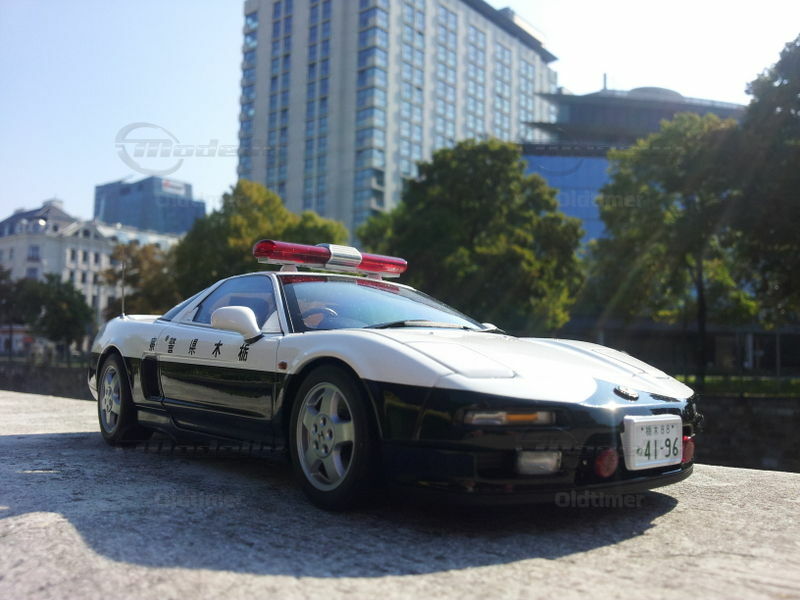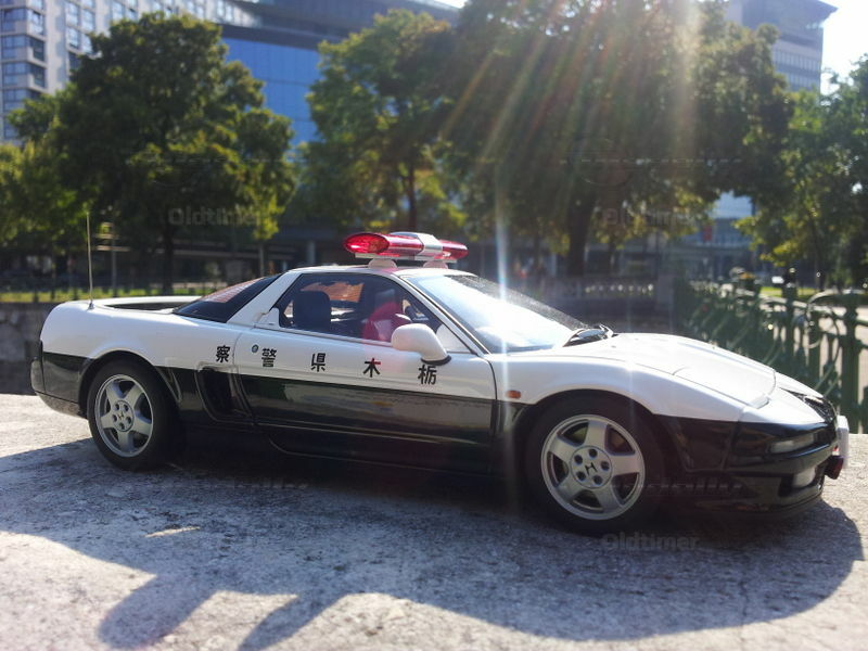 Statt des Firmenlogos von Honda prangt das Hoheitszeichen der japanischen Polizei (Nihon no Keisatsu), eine stilisierte goldfarbene Kirschblüte.