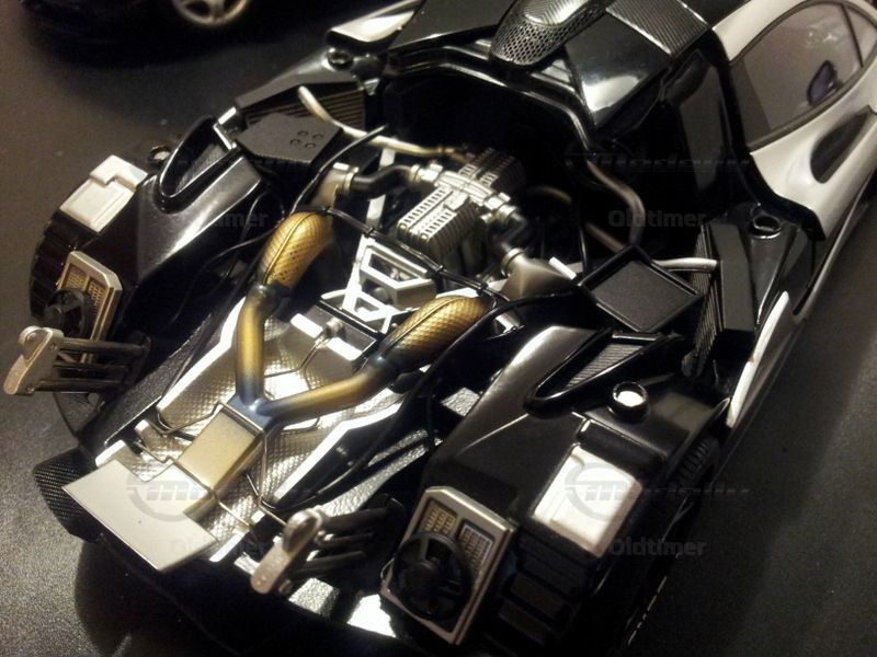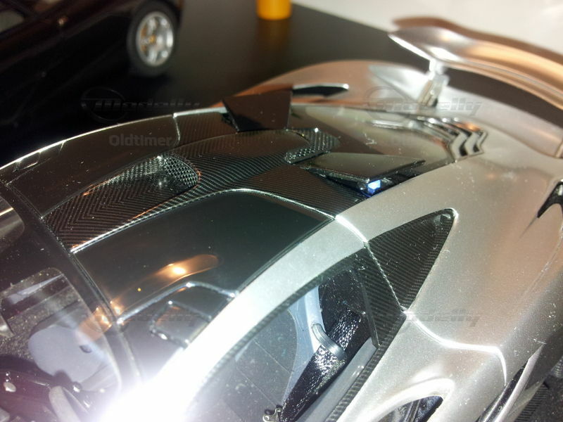 Das Modell besteht aus dem Kunststoff Composite. Die Spaltmasse sind dadurch extrem klein und die Lackierung in "Mattchrom" ist fehlerfrei. Die zu öffnenden Teile werden durch kleine Magnete geschlossen gehalten. Die im Original aus Carbon gefertigten Teile wurden sehr schön umgesetzt.