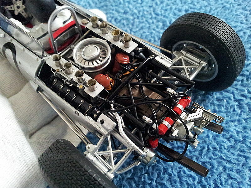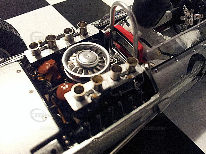 Hervorragend gestaltetes Modell von AUTOart aus der Signature-Serie. Aus fast 500 Einzelteilen wurde eine Miniatur gefertigt die es ohne Weiteres mit Modellen der Firma CMC aufnehmen kann. Selbst kleinste Details sind ausgearbeitet. Alleine die (echten) Schrauben auf der Karosserie sind sehenswert. Der Motor weist eine Vielzahl von Kabeln, Verbindungen und Details auf. Der Ventilator ist drehbar, die Lenkung ebenfalls.