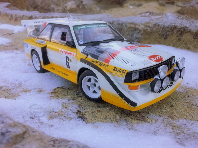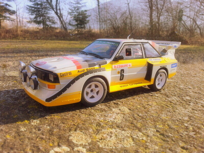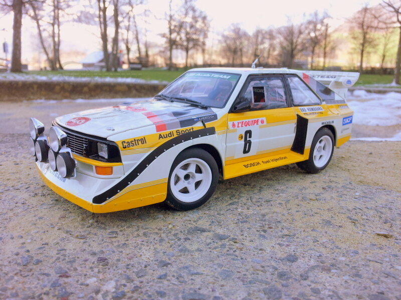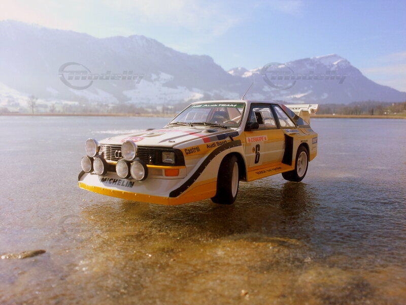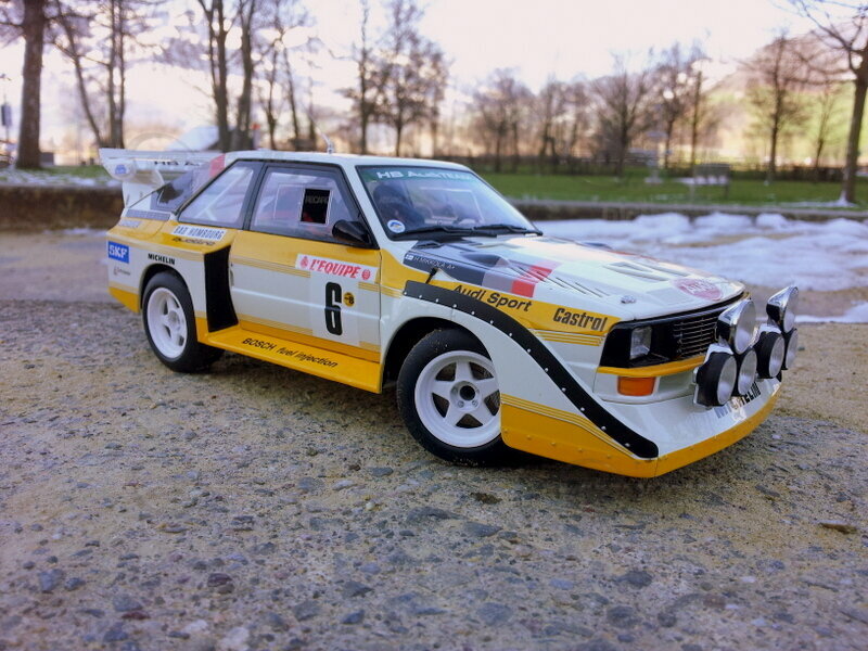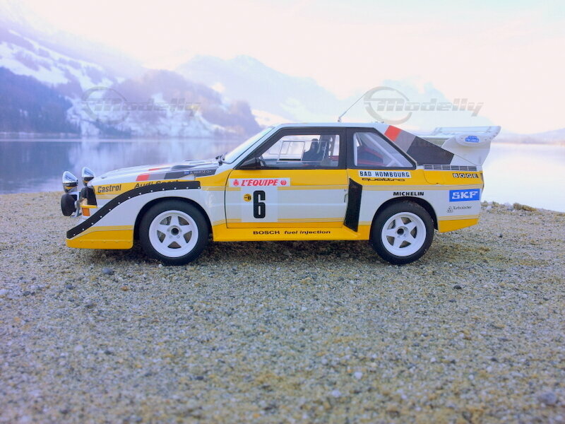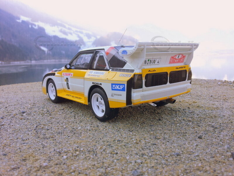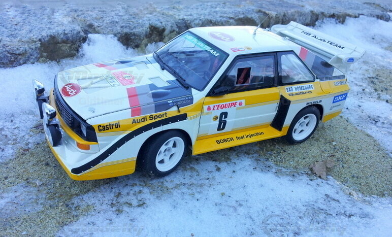 Das Modellauto basiert auf dem legendären Audi Sport quattro S1 E2, einem der berühmtesten Rallyeautos der 1980er Jahre. Der Audi Sport quattro S1 E2 wurde im Jahr 1985 als Weiterentwicklung seines Vorgängers, dem Audi Sport quattro, eingeführt. Das Fahrzeug war Teil der bekannten Gruppe B Rallyeklasse, die für ihre leistungsstarken und technisch fortschrittlichen Fahrzeuge bekannt war. Die Generation des Audi Sport quattro S1 E2 wurde von 1985 bis 1986 produziert.