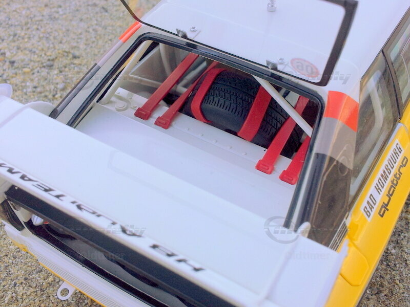 Das Modell, welches Teil der Sammlung von "Oldtimer" auf Modelly ist, spiegelt die markante gelb-weiße Lackierung des Originalfahrzeugs wider. Die gelben Akzente an der Front, den Seitenschwellern und dem vorderen Stoßfänger verleihen dem Modell einen dynamischen Look. Die Logos und Schriftzüge von Audi Sport, BOSCH und Michelin sind präzise aufgebracht und geben dem Modell seinen charakteristischen und sportlichen Look.