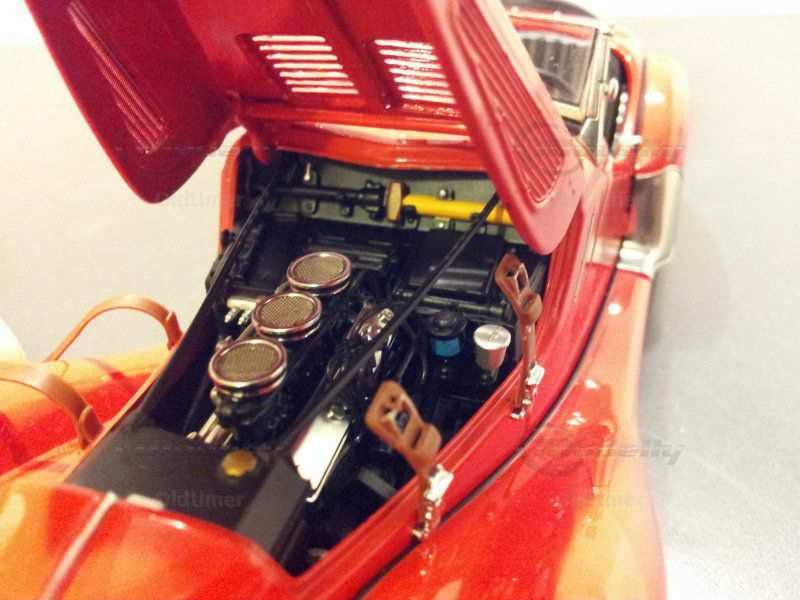 Eine weitere perfekte Miniatur von AUTOart . Sehr schöne Details wie die Anzeigen im Cockpit, abnehmbare Radverkleidungen und ein sehr detaillierter Motor machen das Modell zu etwas ganz Besonderem. Das Verdeck ist abnehmbar und als Alternative kann es als zusammengerolltes Zubehörteil hinter den Sitzen verstaut werden.