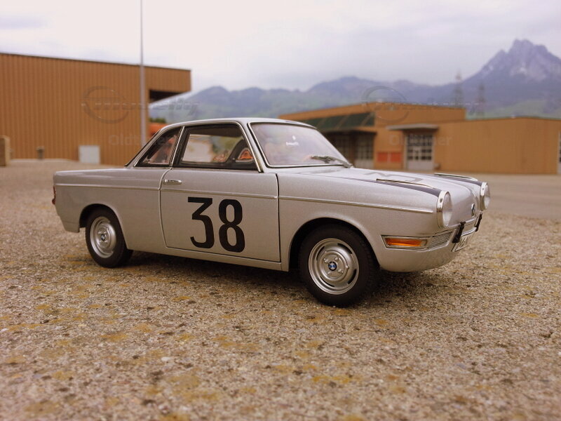 Das Modellauto im Maßstab 1:18, gefertigt von AUTOart, ist eine hochwertige Replik des originalen BMW 700, speziell im Kontext des Innsbruck Airport Race. Dieses detailgetreue Modell ist aus robustem Diecast gefertigt, was seine Haltbarkeit und Qualität unterstreicht. Die Modellnummer 38ist deutlich auf der Tür sichtbar, und die silberene Lackierung ist akkurat nachgebildet und beeindruckt durch ihre präzise Nachbildung des Originals. Typisch für AUTOart sind auch die authentischen Abzeichen und Embleme auf der Karosserie, die das Erscheinungsbild des Modellautos aufwerten.