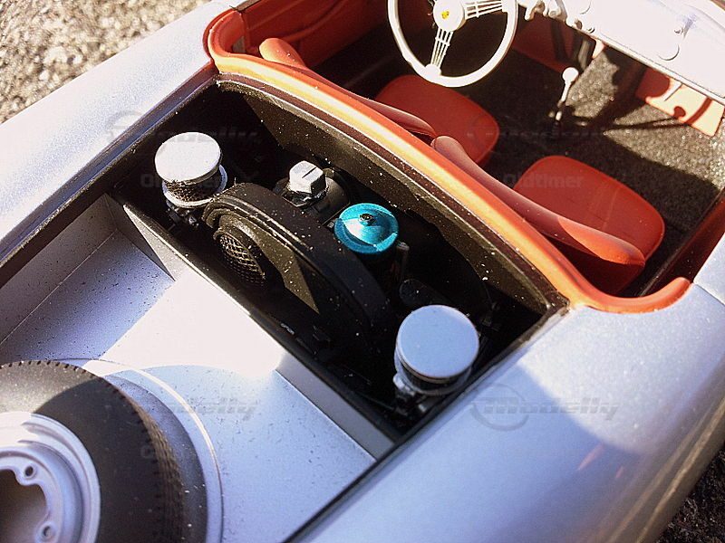 Wunderschön umgesetztes Modell von AUTOart. Es handelt sich um die Museumsedition für Porsche. Eine perfekte Lackierung und äusserst geringe Spaltmasse zeichnen das Modell aus. Die wenigen Details sind sehr gut umgesetzt, so ist z.B. das Dreispeichenlenkrad durchbrochen. Die Front- und Heckhaube sitzen an filigranen Scharnieren.
